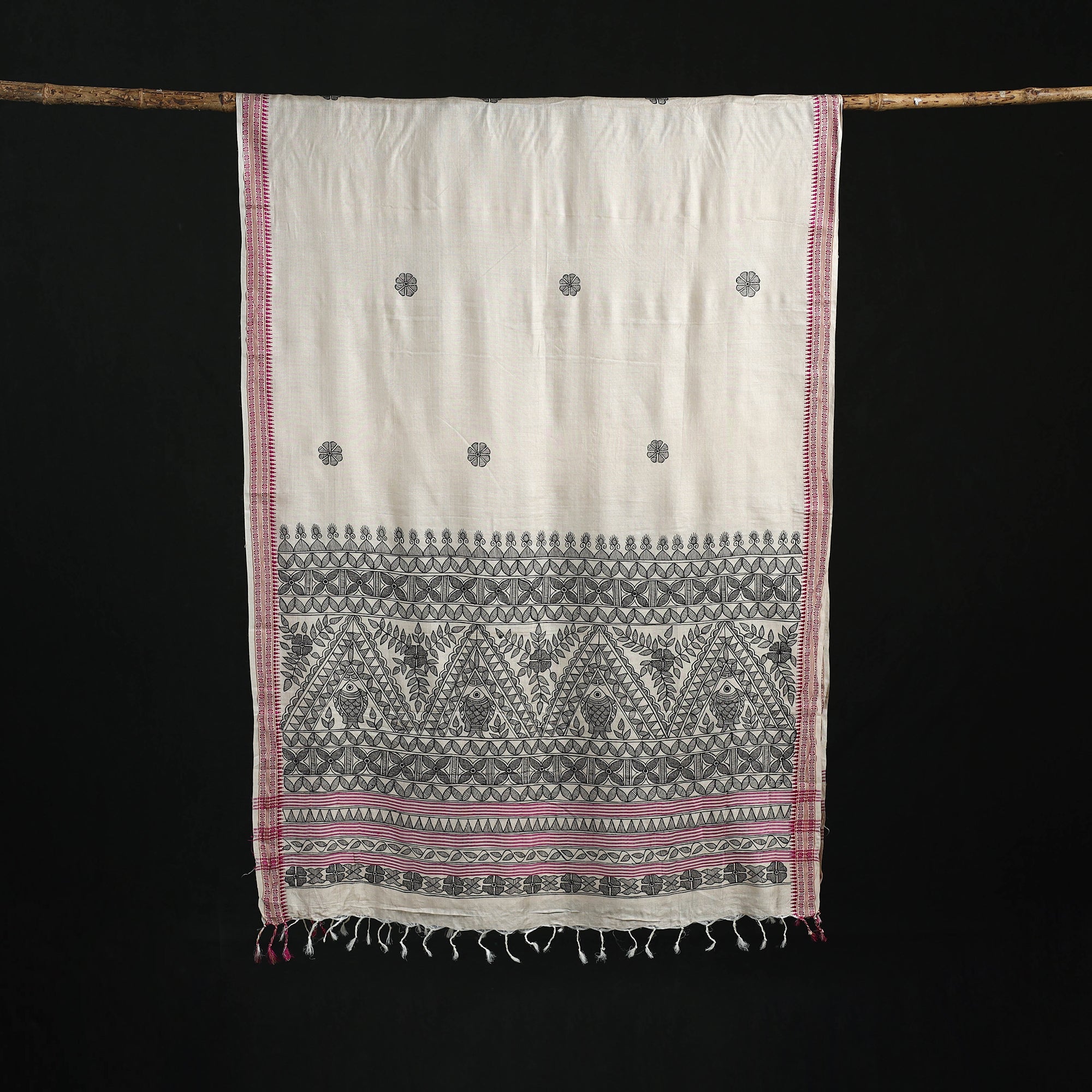 Handpainted Madhubani Handloom Tussar Cotton Dupatta 23