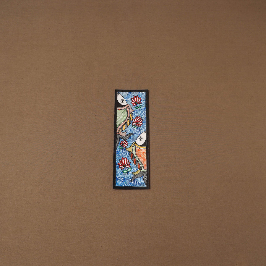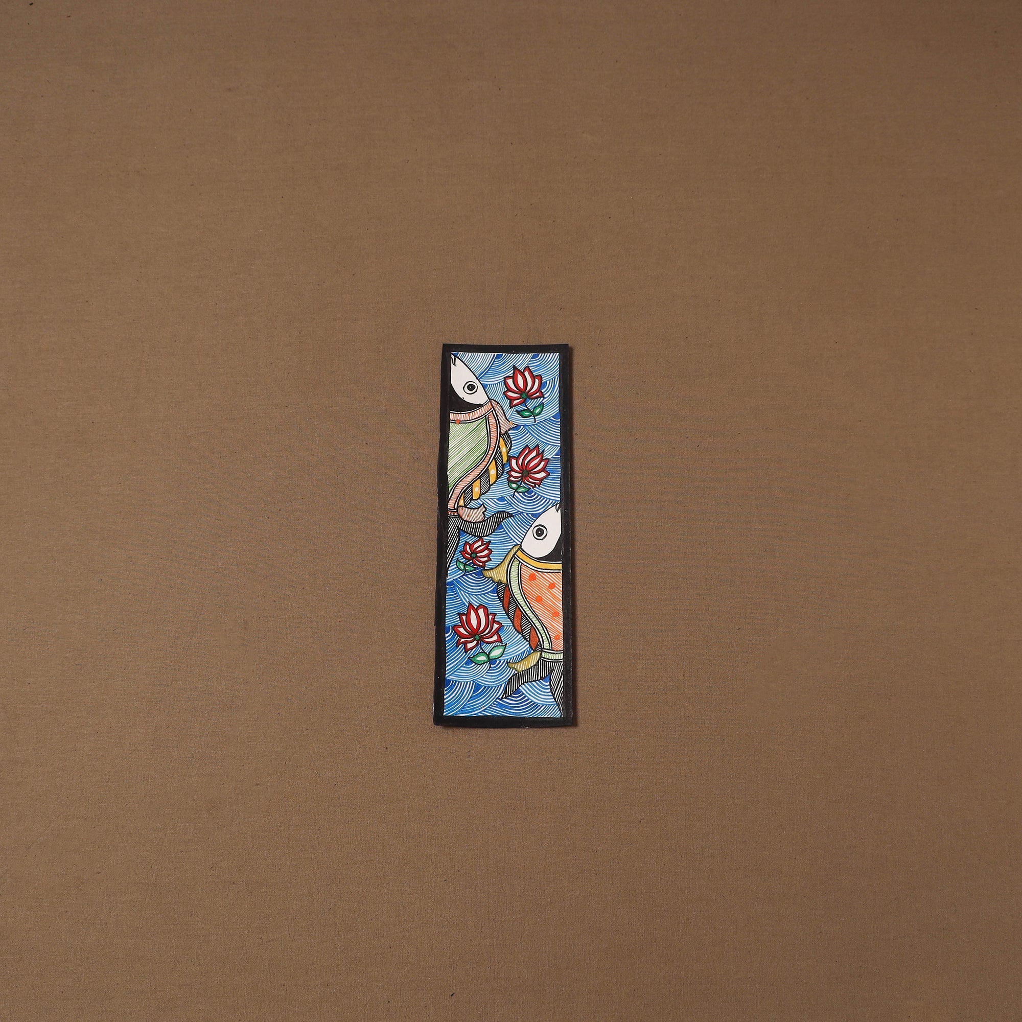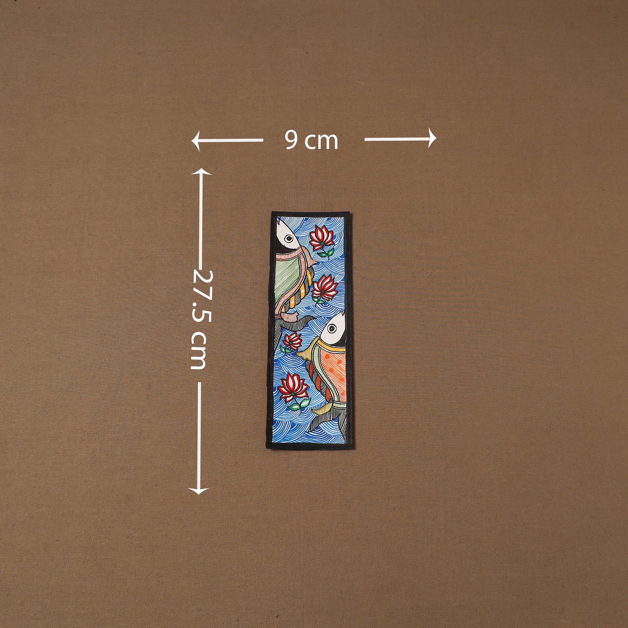 Handpainted handmade paper using natural colors and permanent ink Madhubani painting by master artisan Hira Devi from Bihar, reflecting the depth and beauty of the region’s artistic heritage. Madhubani painting, also known as Mithila art, is one of India’s most celebrated traditional art forms, known for its intricate lines, vibrant motifs, and storytelling inspired by nature and mythology. In this art, artists traditionally use fingers, twigs, and matchstick-like tools to create detailed patterns.