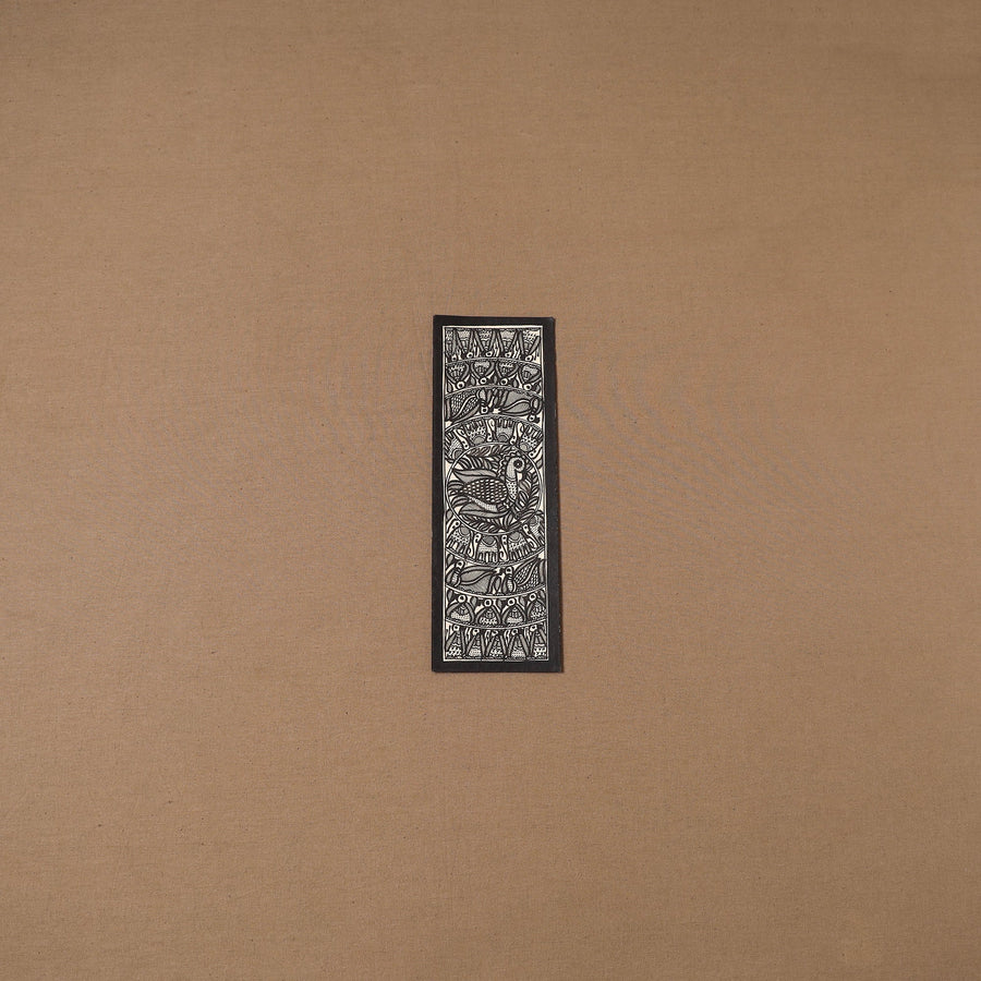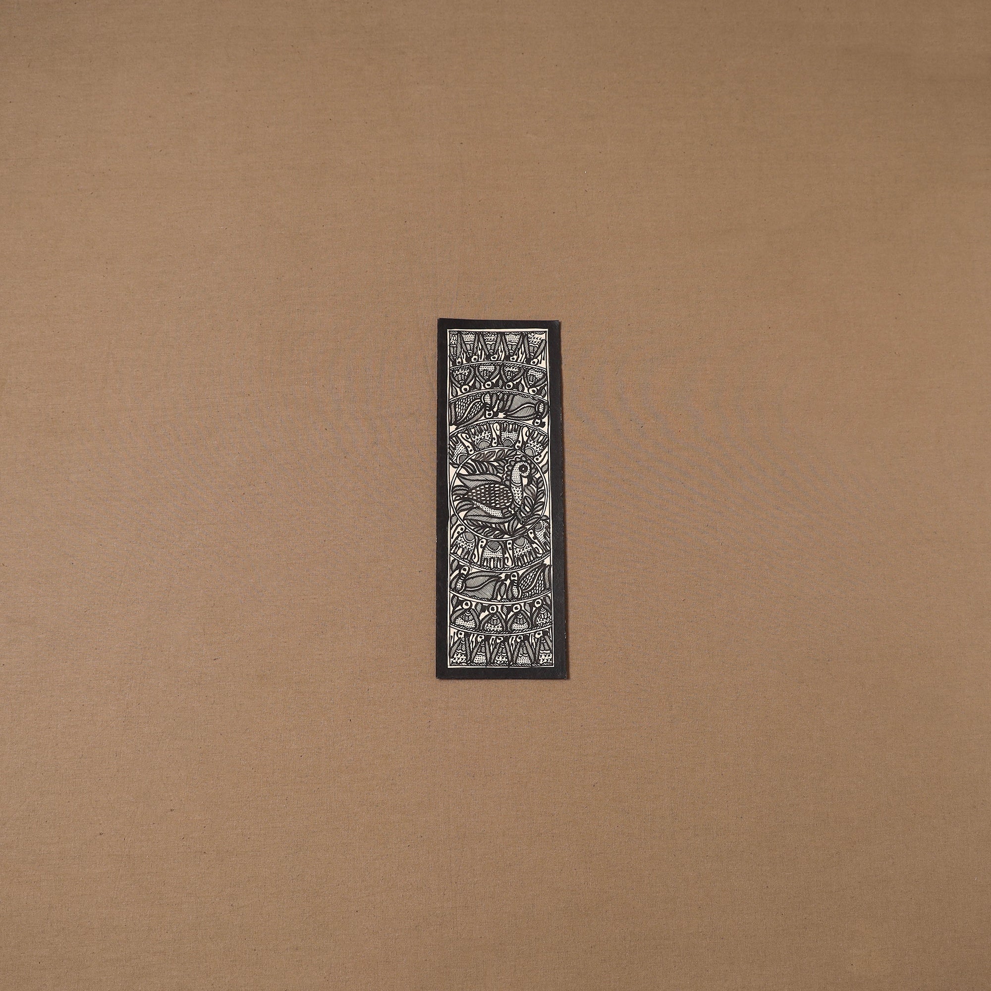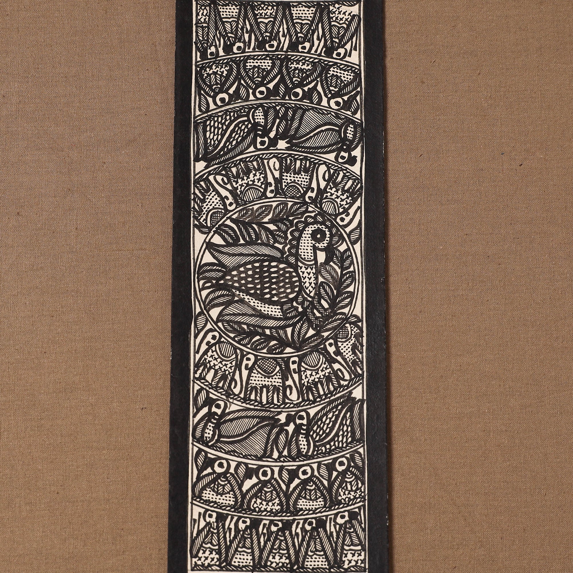 Handpainted handmade paper using natural colors and permanent ink Madhubani painting by master artisan Hira Devi from Bihar, reflecting the depth and beauty of the region’s artistic heritage. Madhubani painting, also known as Mithila art, is one of India’s most celebrated traditional art forms, known for its intricate lines, vibrant motifs, and storytelling inspired by nature and mythology. In this art, artists traditionally use fingers, twigs, and matchstick-like tools to create detailed patterns.
