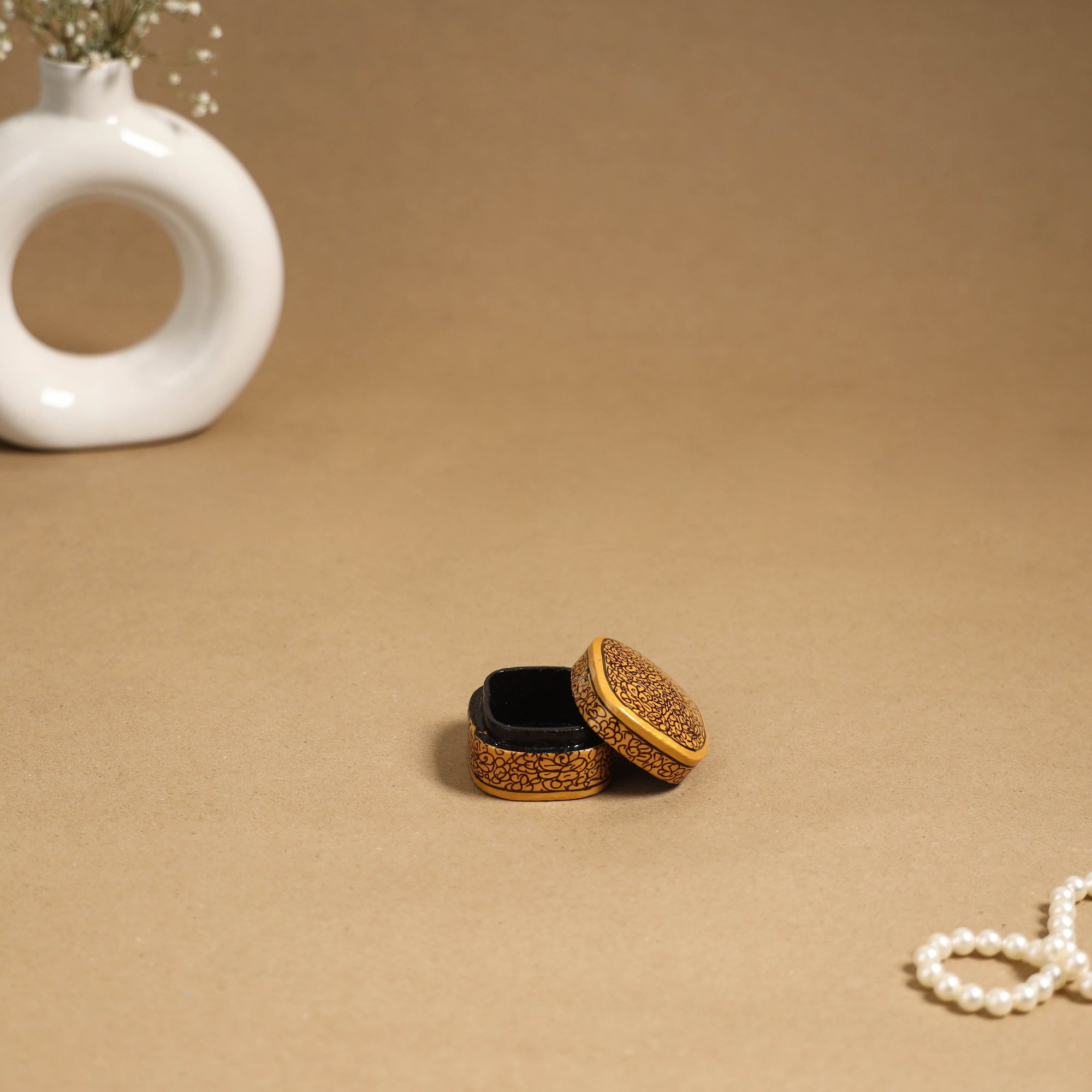 This yellow multipurpose box adds a charming touch to any space with its acrylic hand-painted details. Made from sustainable paper mache using waste paper and glue, it’s both eco-friendly and stylish. Lightweight and versatile, it’s perfect for storing jewellery, keepsakes, small accessories, or as a unique decor piece.
