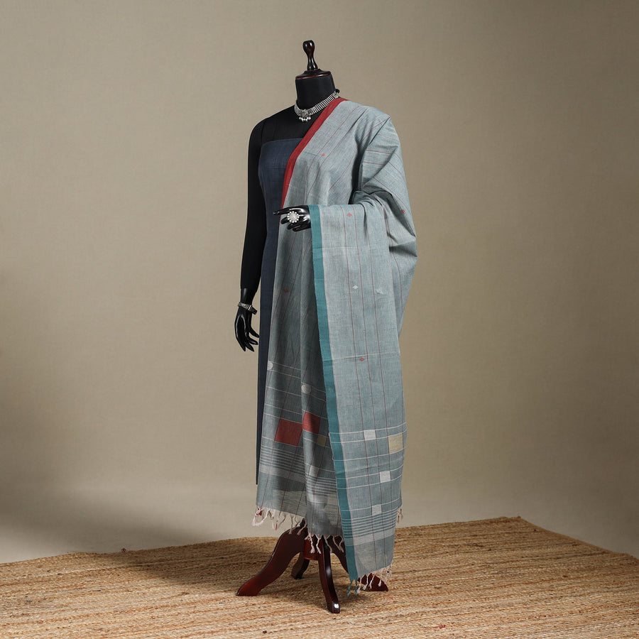 Blue - Handspun Handloom Buti Natural Dyed Cotton Srikakulam Jamdani Dupatta 23