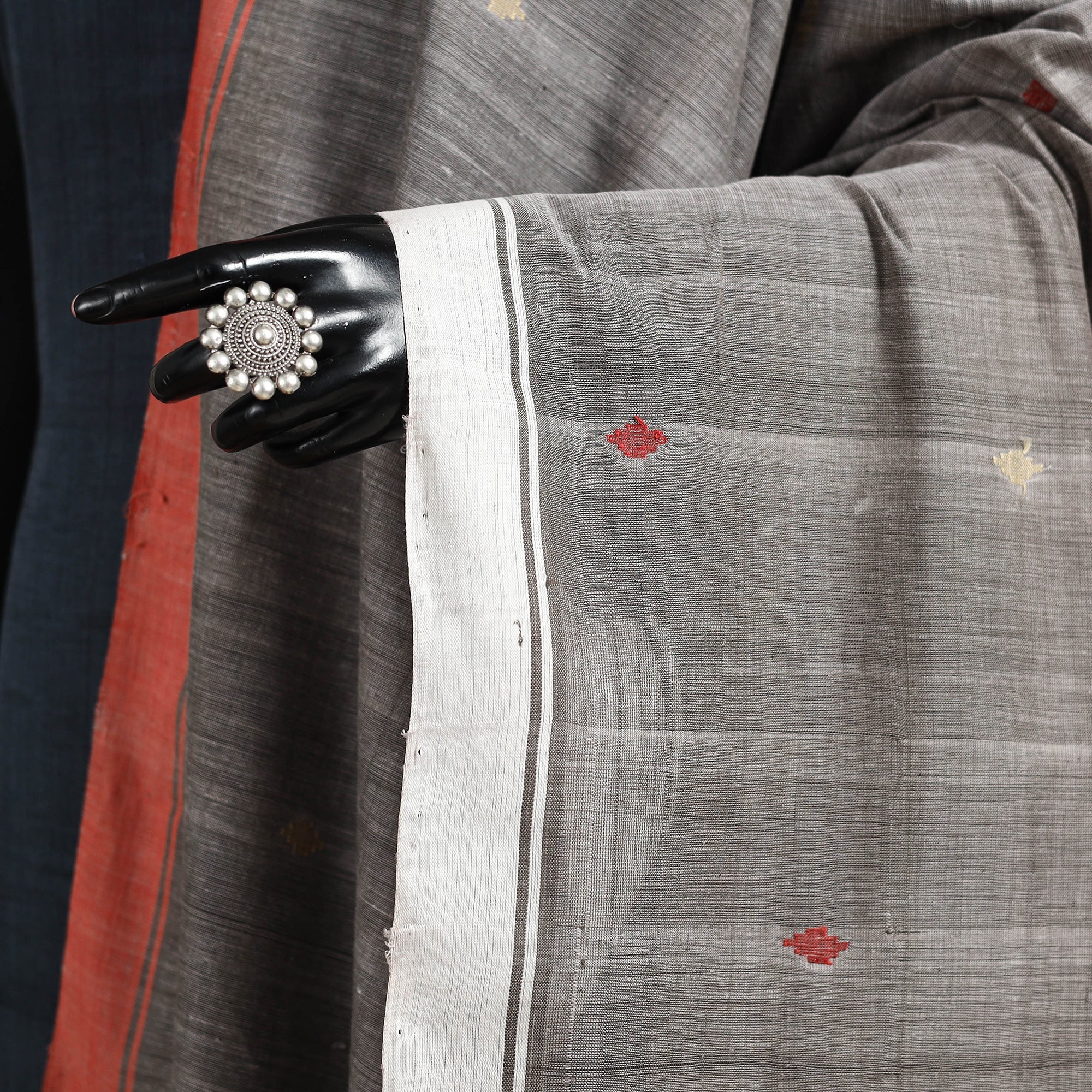 Grey - Handspun Handloom Buti Natural Dyed Cotton Srikakulam Jamdani Dupatta 28