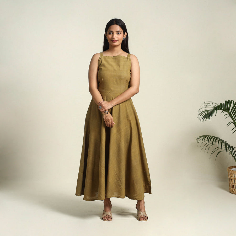 Elevate your daily style with this olive green natural dyed handspun handloom cotton plain dress, designed for comfort and ease. With its soft, breathable texture, it promises a relaxed feel all day long. Ideal for everyday outings or casual gatherings, this dress beautifully merges traditional charm with modern simplicity.