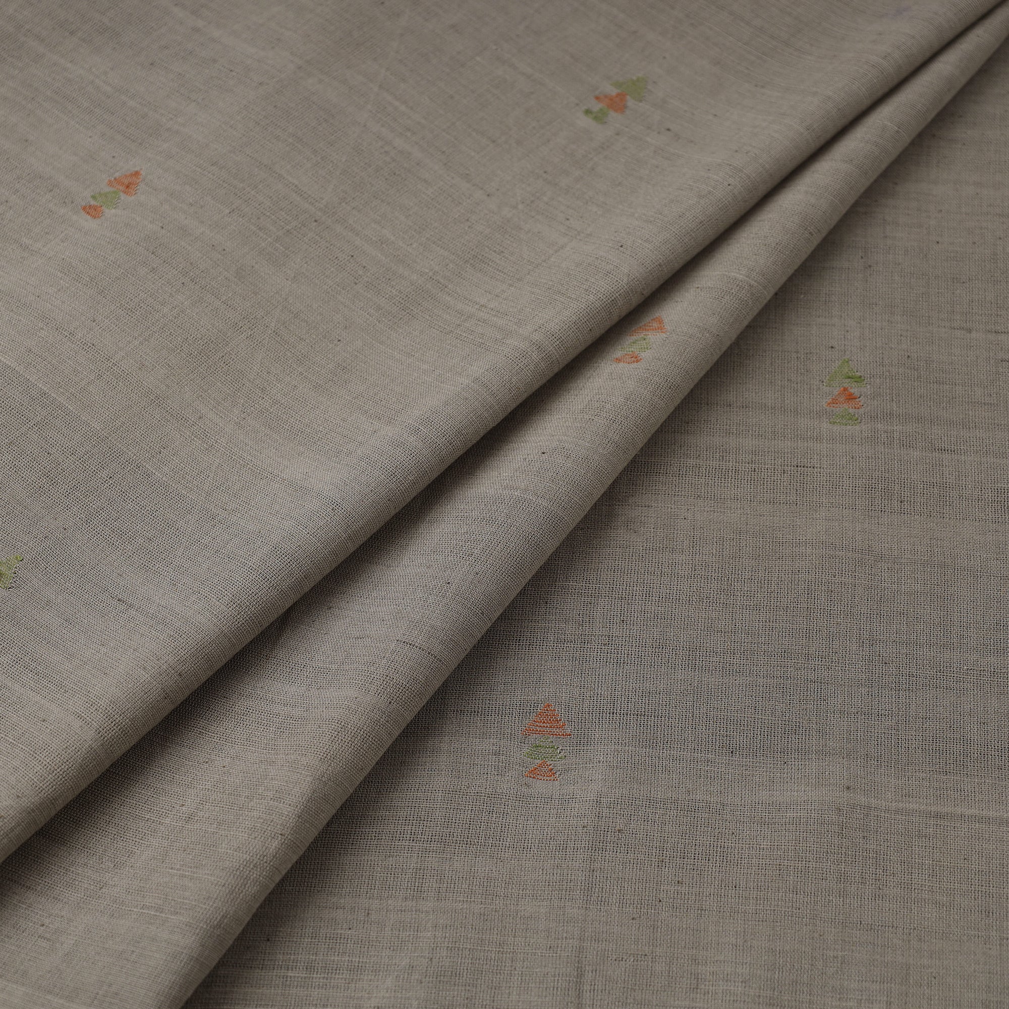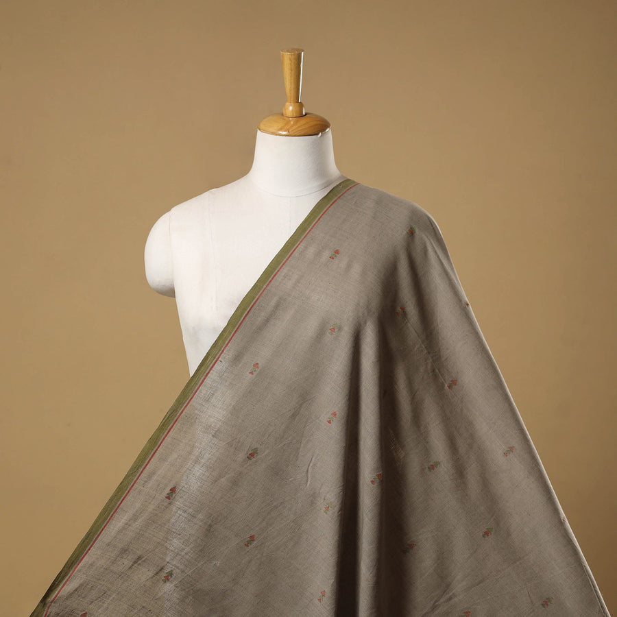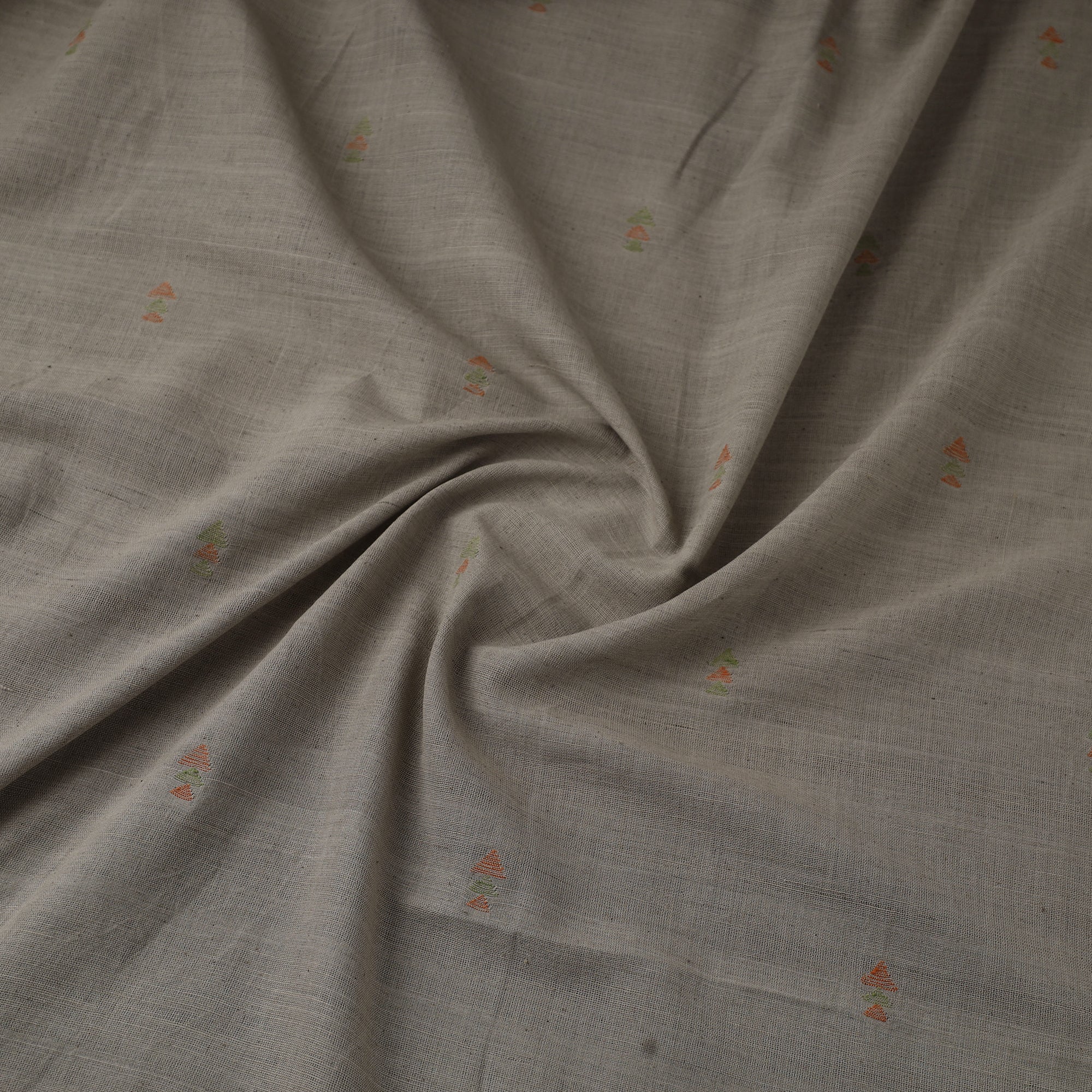 Brown handspun handloom pure cotton jamdani fabric from the Srikakulam district of Andhra Pradesh. Woven on traditional pit looms using the intricate extra weft technique, it features fine butis and natural hues. This fabric is suitable for making sarees, dupattas, kurtas or home decor items.