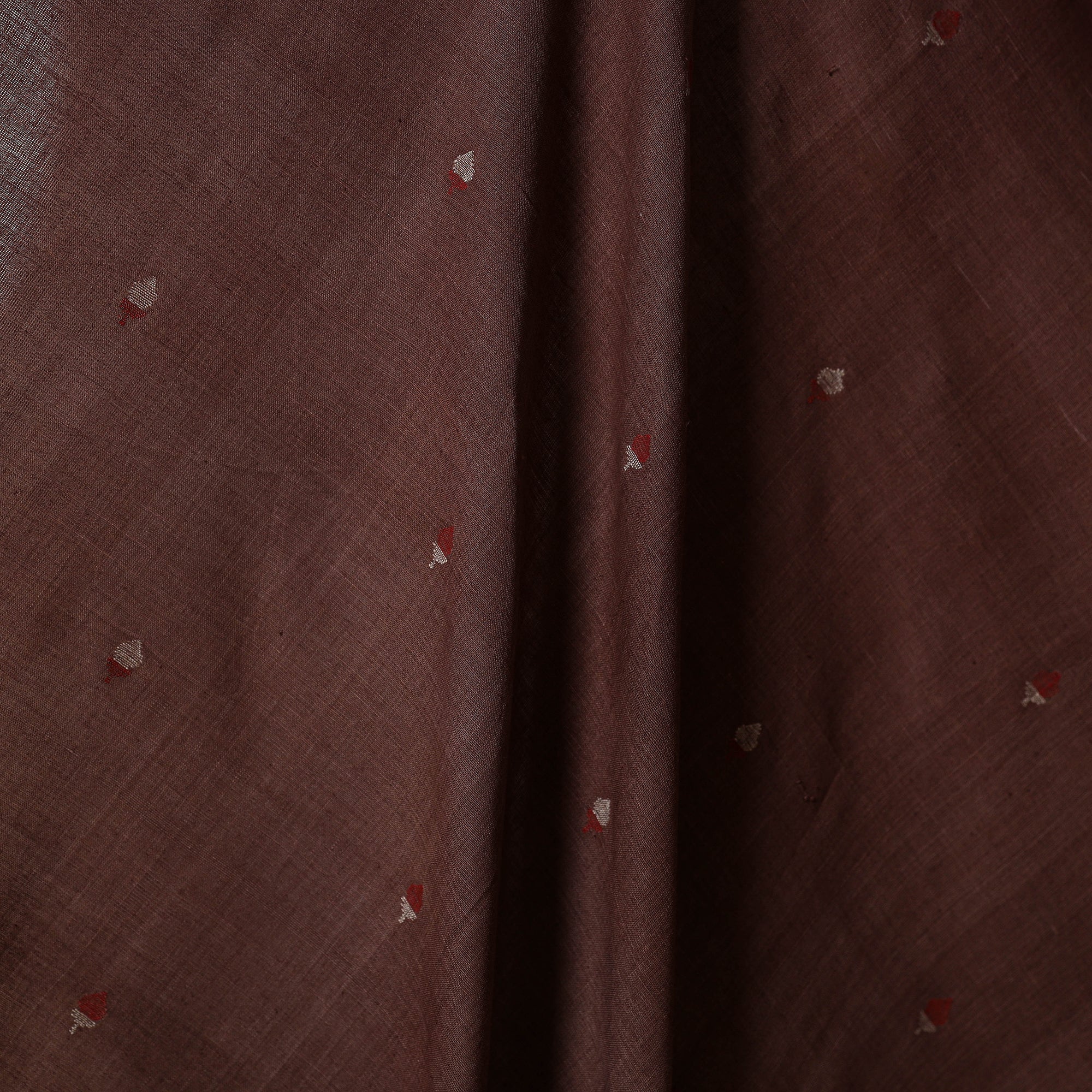 Brown handspun handloom cotton jamdani fabric from the Srikakulam district of Andhra Pradesh. Woven on traditional pit looms using the intricate extra weft technique, it features fine butis and natural hues. This fabric is suitable for making sarees, dupattas, kurtas, or home decor items.