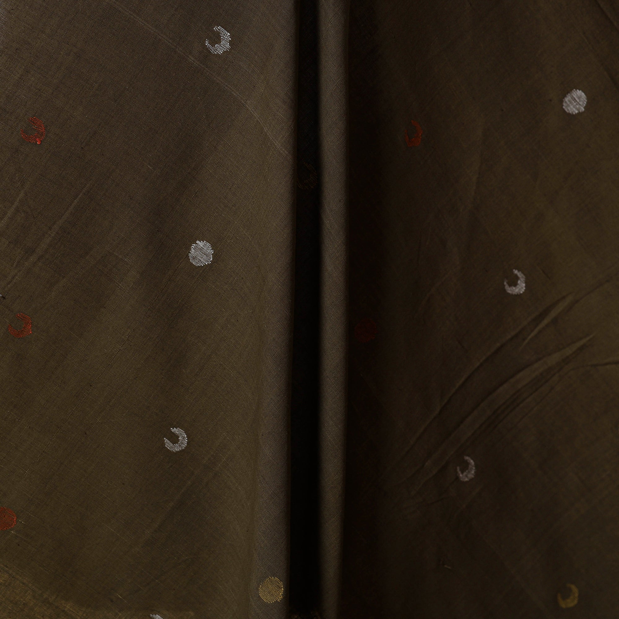 Brown - Handspun Handloom Natural Dyed Cotton Buti Srikakulam Jamdani Fabric 20