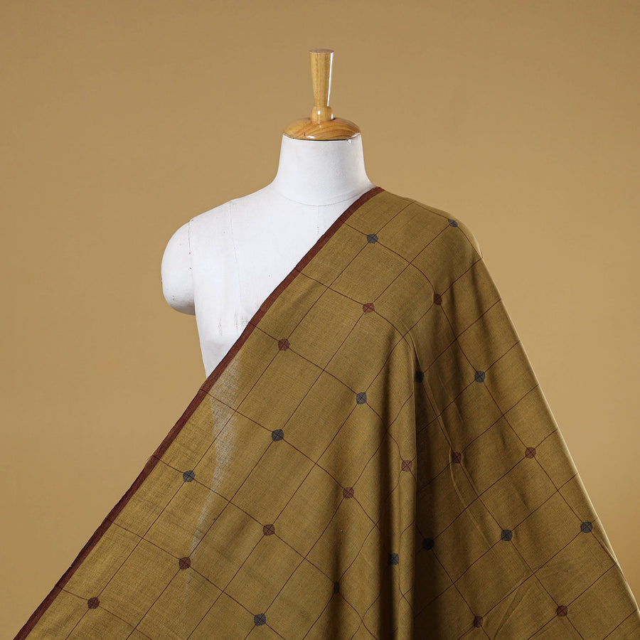 Beige handspun handloom cotton jamdani fabric from the Srikakulam district of Andhra Pradesh. Woven on traditional pit looms using the intricate extra weft technique, it features fine butis and natural hues. This fabric is suitable for making sarees, dupattas, kurtas, or home decor items.