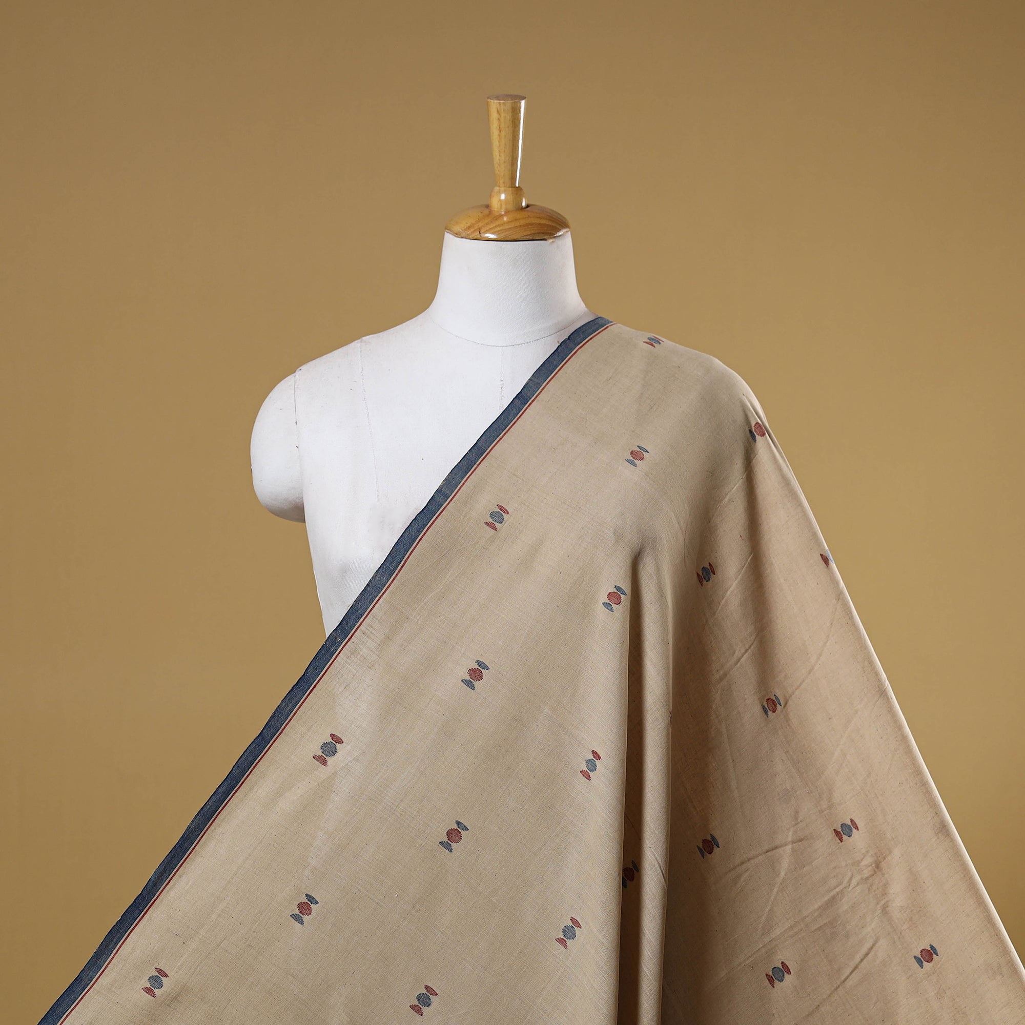Beige - Handspun Handloom Natural Dyed Cotton Buti Srikakulam Jamdani Fabric 32