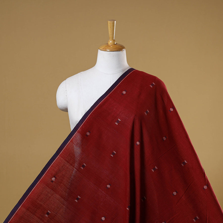 Red handspun handloom cotton jamdani fabric from the Srikakulam district of Andhra Pradesh. Woven on traditional pit looms using the intricate extra weft technique, it features fine butis and natural hues. This fabric is suitable for making sarees, dupattas, kurtas, or home decor items.