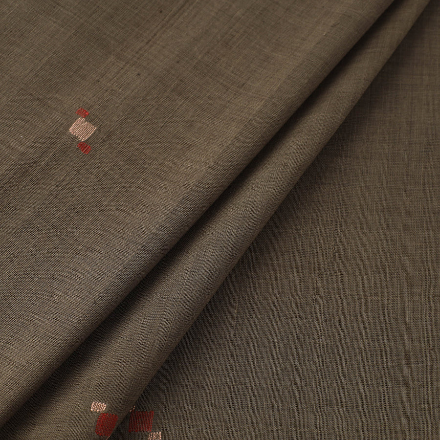 Experience the artistry of brown handspun handloom natural dyed cotton jamdani fabric from the Srikakulam district of Andhra Pradesh. Crafted using a handloom pit loom technique, this fabric is woven with precision, ensuring durability and finesse. The making of Jamdani involves the supplementary weft technique, a meticulous and time-consuming process requiring expert craftsmanship. This exquisite fabric is perfect for sarees, dupattas, kurtas, or elegant home decor, adding a touch of tradition to every creation.