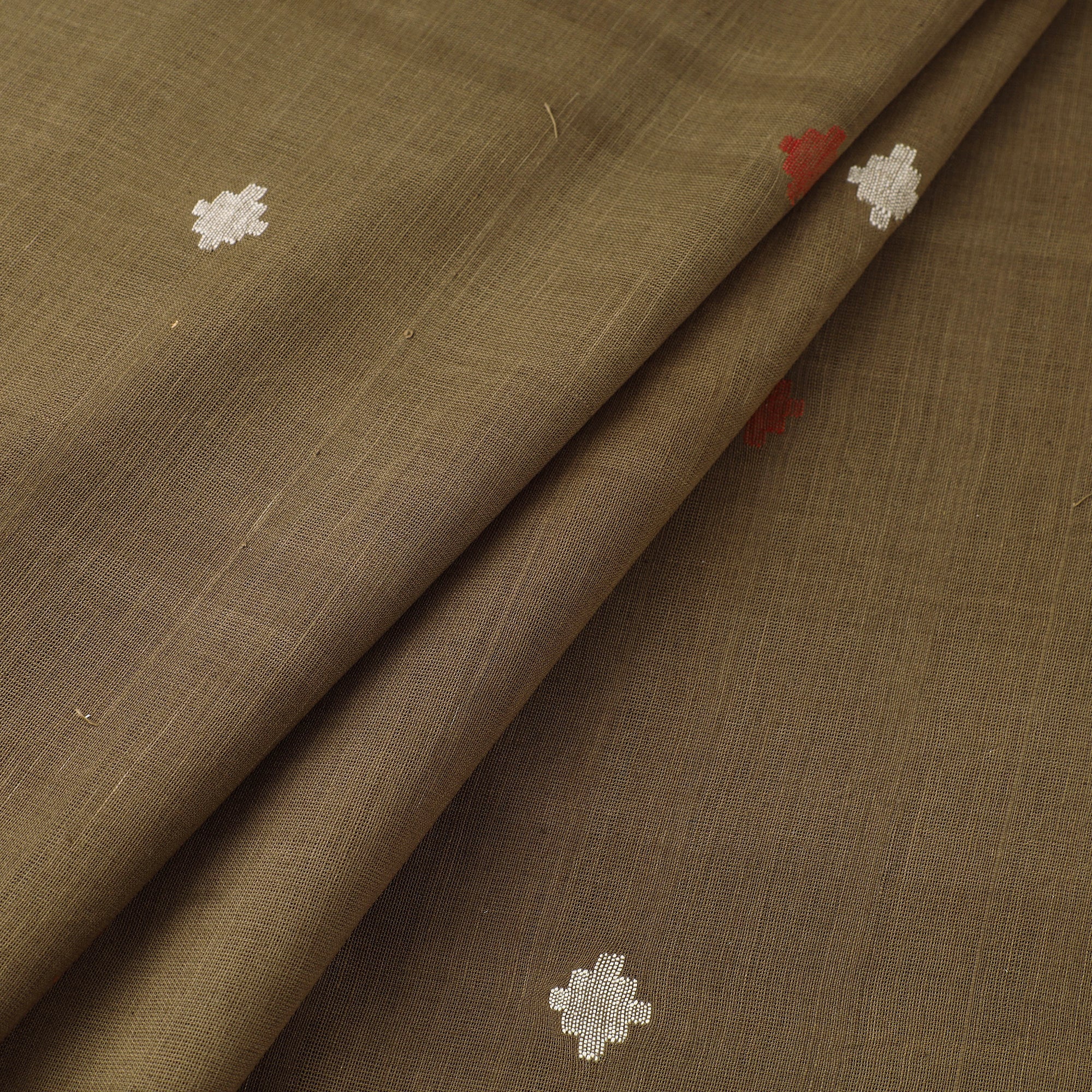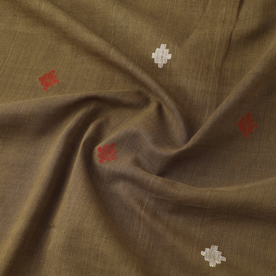Experience the artistry of brown handspun handloom natural dyed cotton jamdani fabric from the Srikakulam district of Andhra Pradesh. Crafted using a handloom pit loom technique, this fabric is woven with precision, ensuring durability and finesse. The making of Jamdani involves the supplementary weft technique, a meticulous and time-consuming process requiring expert craftsmanship. This exquisite fabric is perfect for sarees, dupattas, kurtas, or elegant home decor, adding a touch of tradition to every creation.