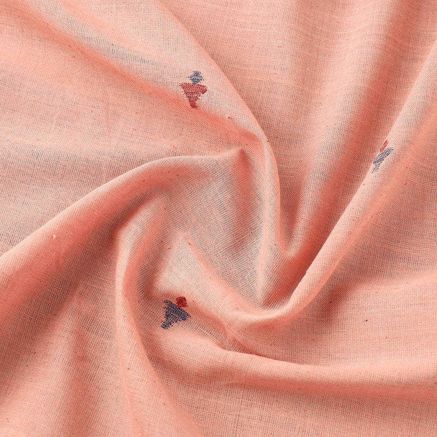 Experience the artistry of peach handspun handloom natural dyed cotton jamdani fabric from the Srikakulam district of Andhra Pradesh. Crafted using a handloom pit loom technique, this fabric is woven with precision, ensuring durability and finesse. The making of Jamdani involves the supplementary weft technique, a meticulous and time-consuming process requiring expert craftsmanship. This exquisite fabric is perfect for sarees, dupattas, kurtas, or elegant home decor, adding a touch of tradition to every creation.
