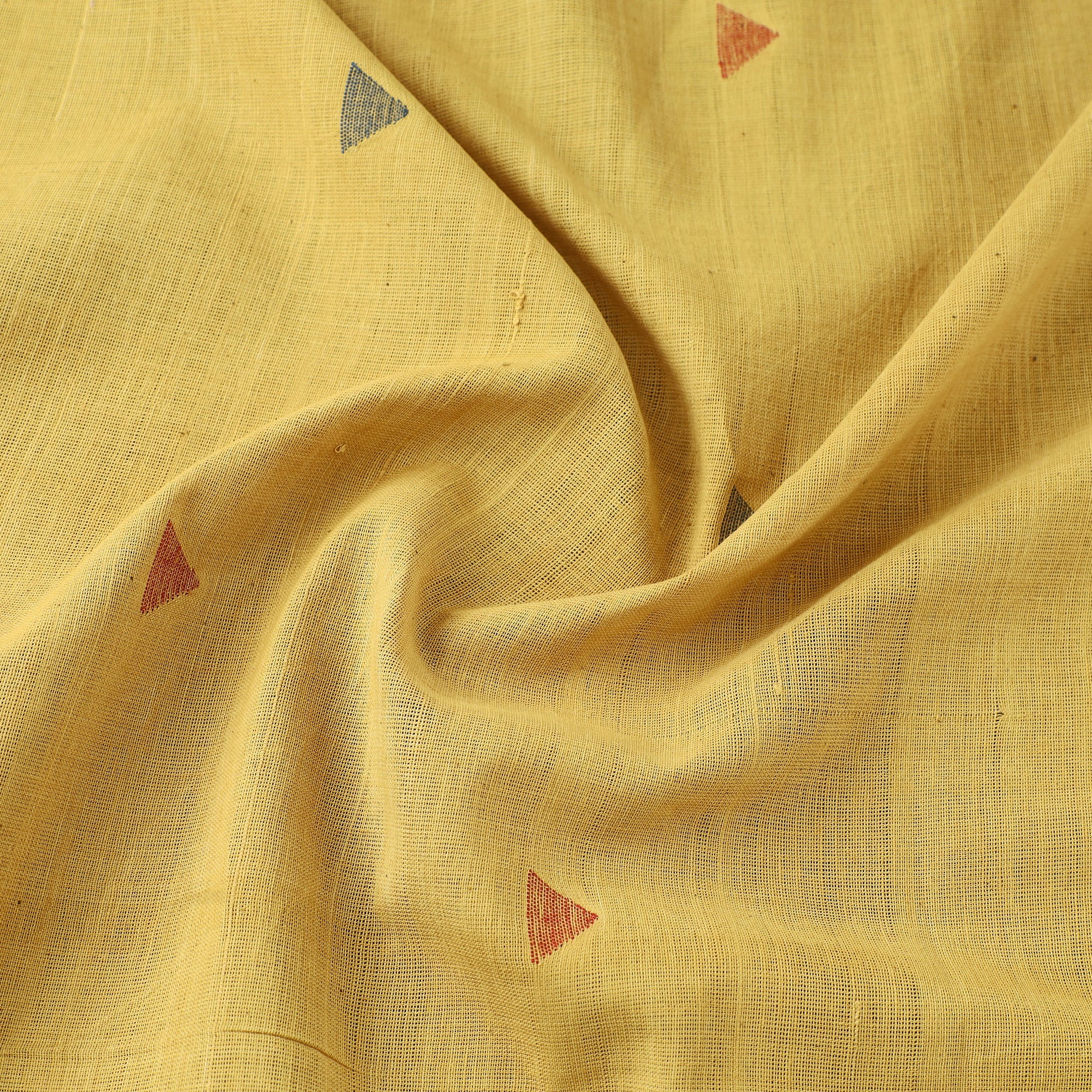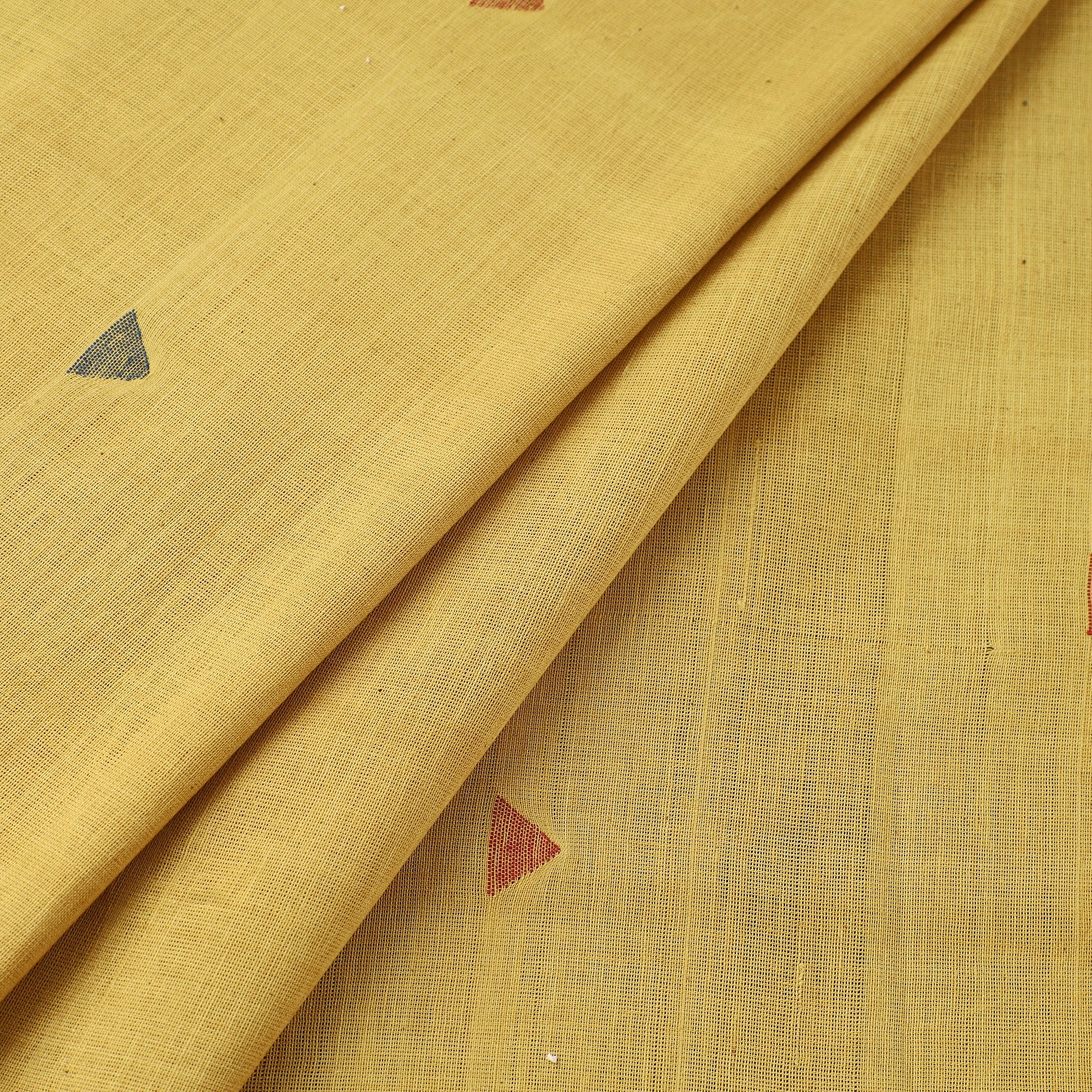 Experience the artistry of yellow handspun handloom natural dyed cotton jamdani fabric from the Srikakulam district of Andhra Pradesh. Crafted using a handloom pit loom technique, this fabric is woven with precision, ensuring durability and finesse. The making of Jamdani involves the supplementary weft technique, a meticulous and time-consuming process requiring expert craftsmanship. This exquisite fabric is perfect for sarees, dupattas, kurtas, or elegant home decor, adding a touch of tradition to every creation.