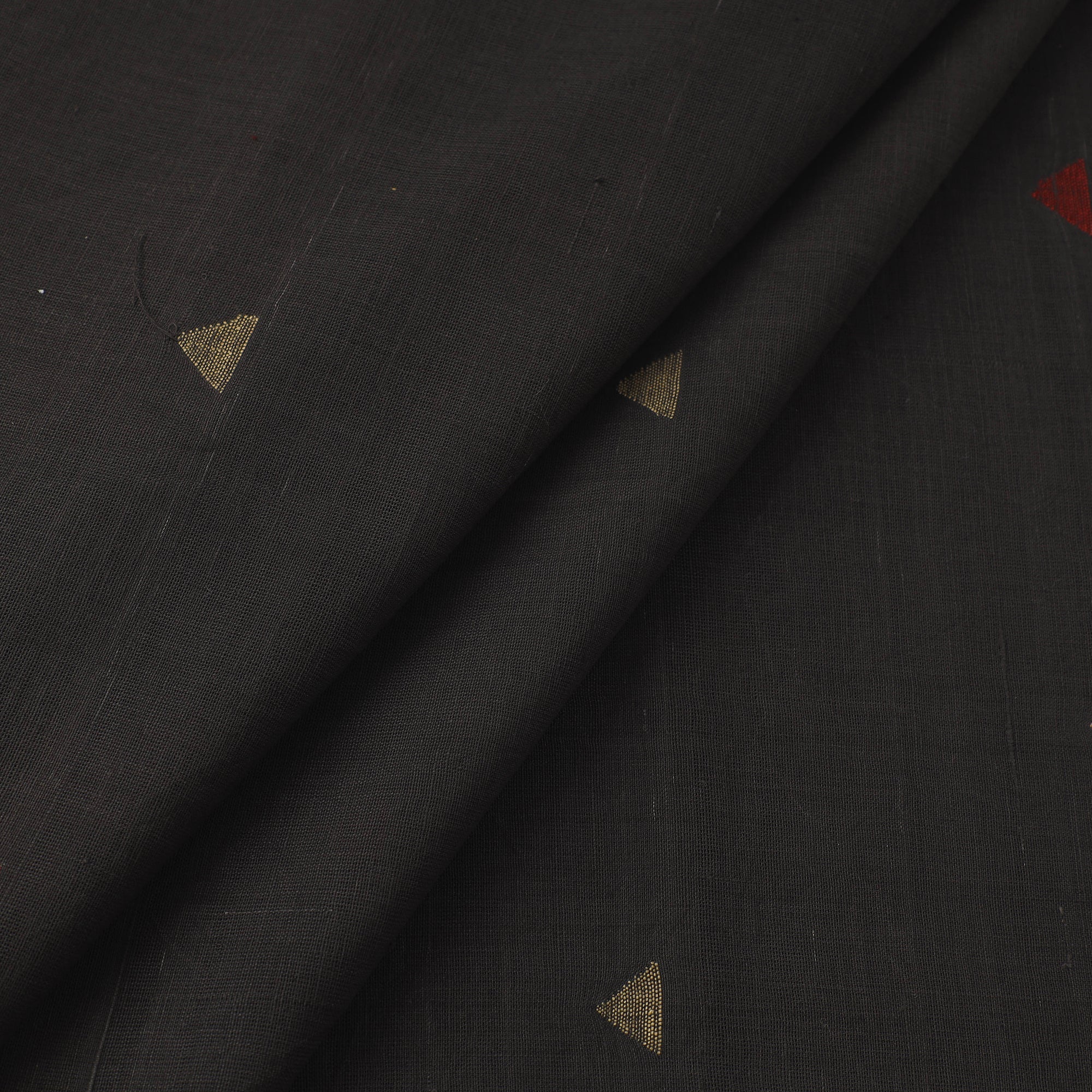 Experience the artistry of black handspun handloom natural dyed cotton jamdani fabric from the Srikakulam district of Andhra Pradesh. Crafted using a handloom pit loom technique, this fabric is woven with precision, ensuring durability and finesse. The making of Jamdani involves the supplementary weft technique, a meticulous and time-consuming process requiring expert craftsmanship. This exquisite fabric is perfect for sarees, dupattas, kurtas, or elegant home decor, adding a touch of tradition to every creation.