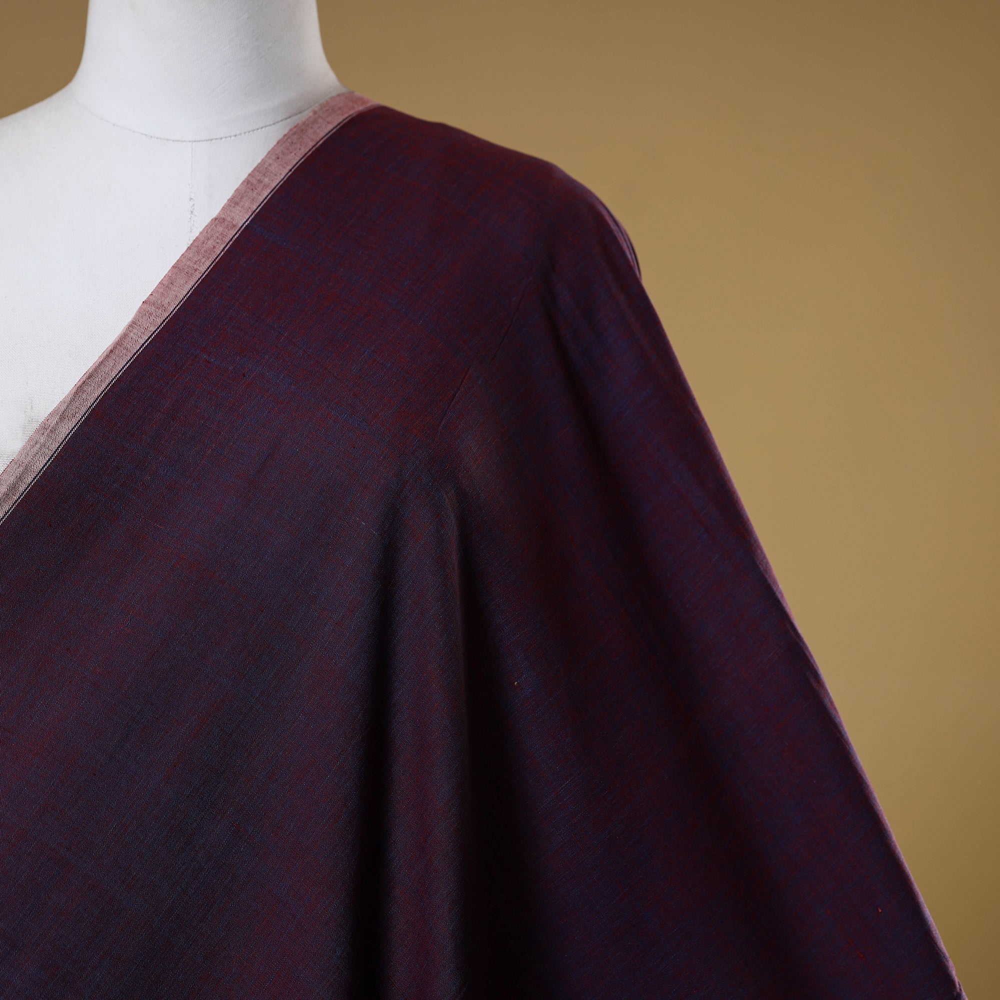 Purple handspun handloom cotton kora plain fabric from Andhra Pradesh. Woven on traditional pit looms, it has a fine texture and natural hues. This fabric is suitable for making sarees, dupattas, kurtas, or home decor items.