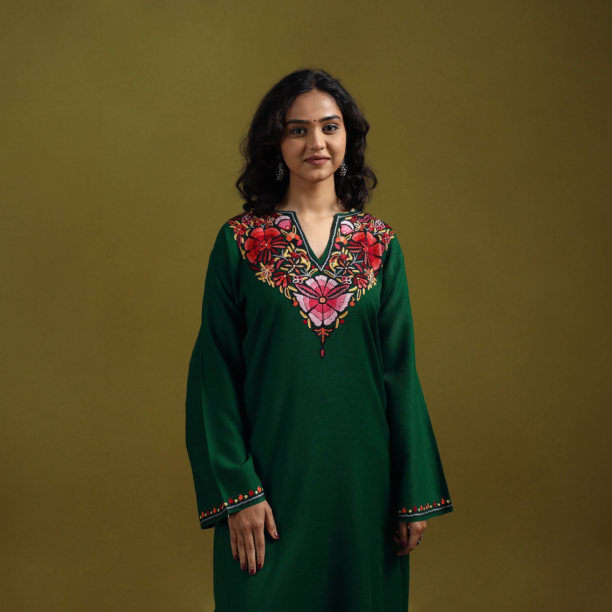 Red - Sozni Hand Embroidered Kashmiri Merino Wool Pheran 62