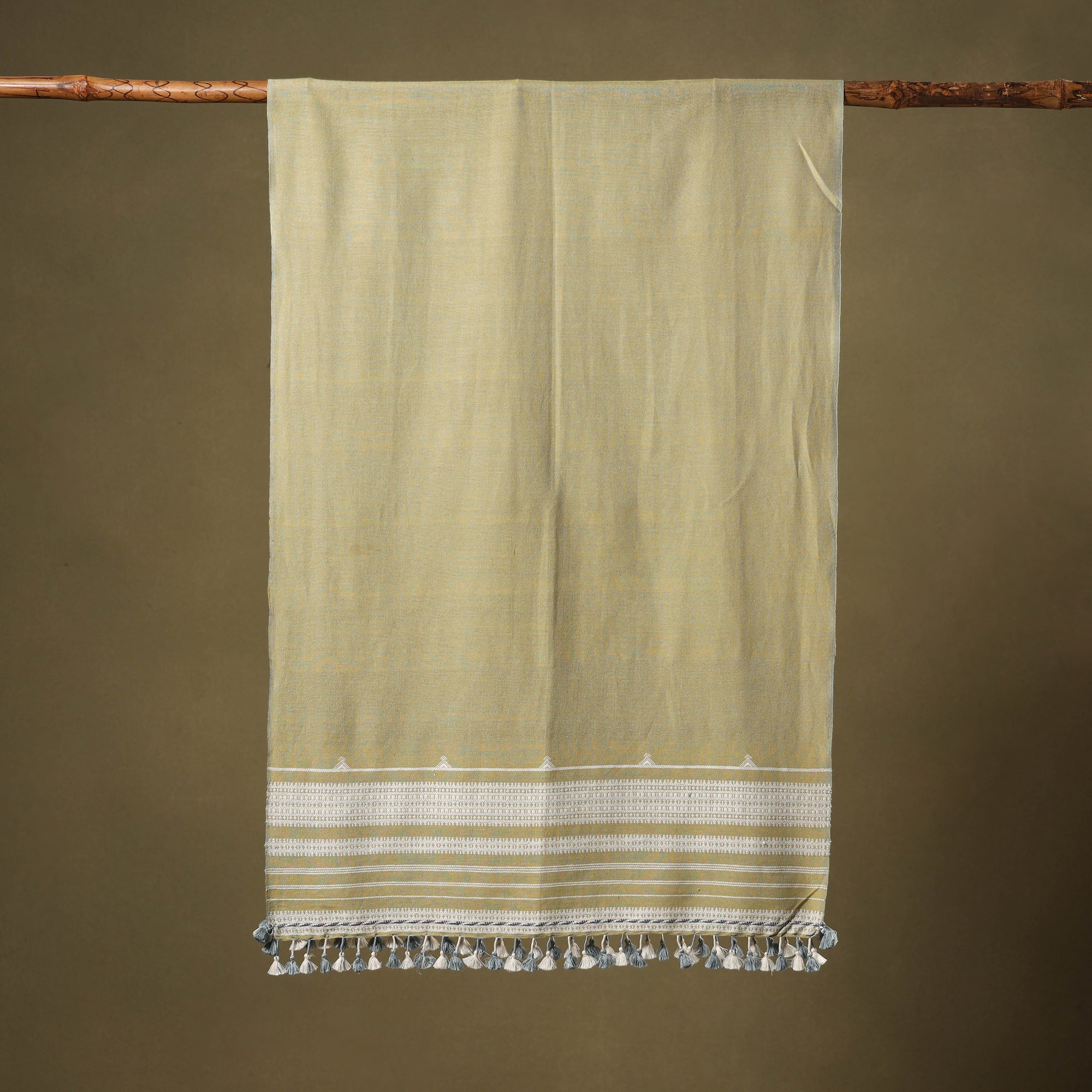 Experience the elegance of Bhujodi weaving with this green handwoven fine cotton stole from Kutch. Made from 100% certified organic cotton and dyed with azo-free colours, it features intricate patterns and soft tassels. A product of traditional craftsmanship from Bhujodi village, this breathable stole blends sustainable materials with timeless artistry. Whether it’s a festive gathering, an office day, or a casual outing, it offers breathable ease and effortless elegance.