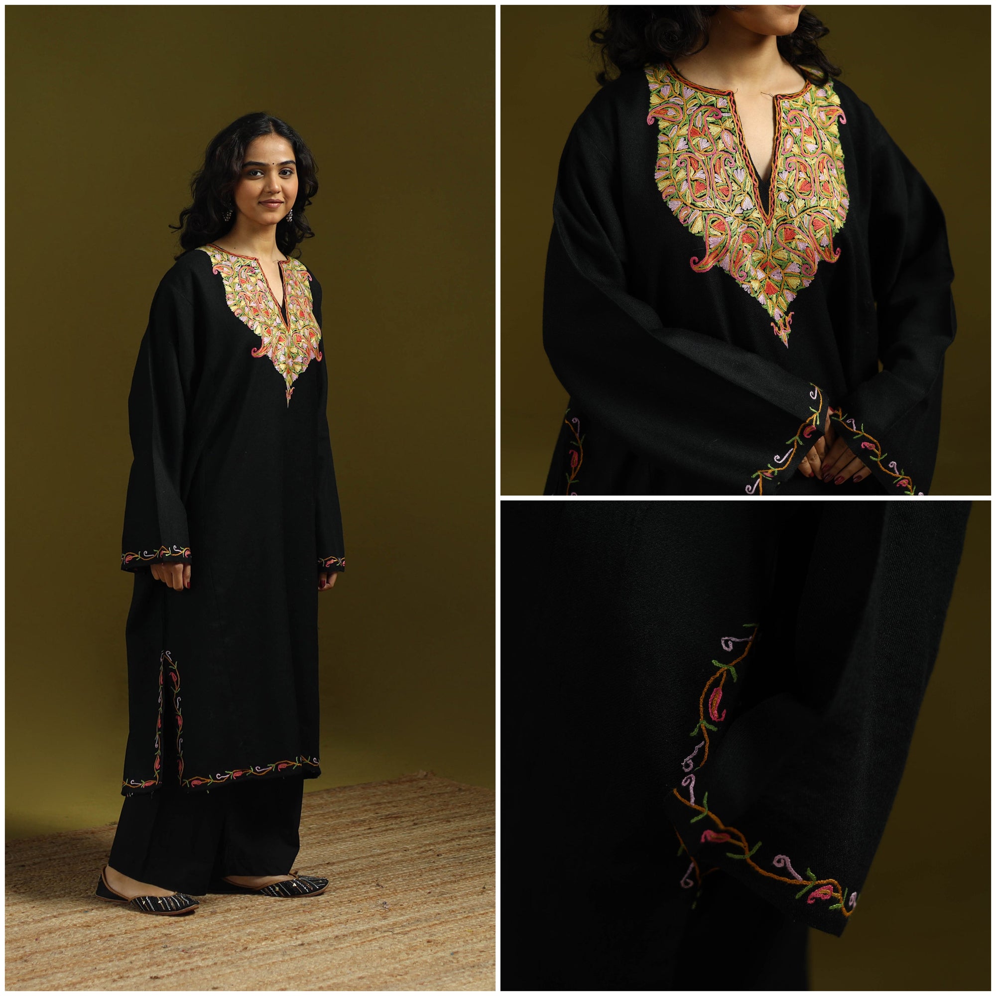 Handwoven pheran is crafted from soft merino wool and adorned with fine sozni hand embroidery, carefully made by skilled artisans Nakeeb, reflecting Kashmir’s rich textile heritage. The pheran features two side pockets for everyday comfort. Perfect for winter days as well as special occasions.