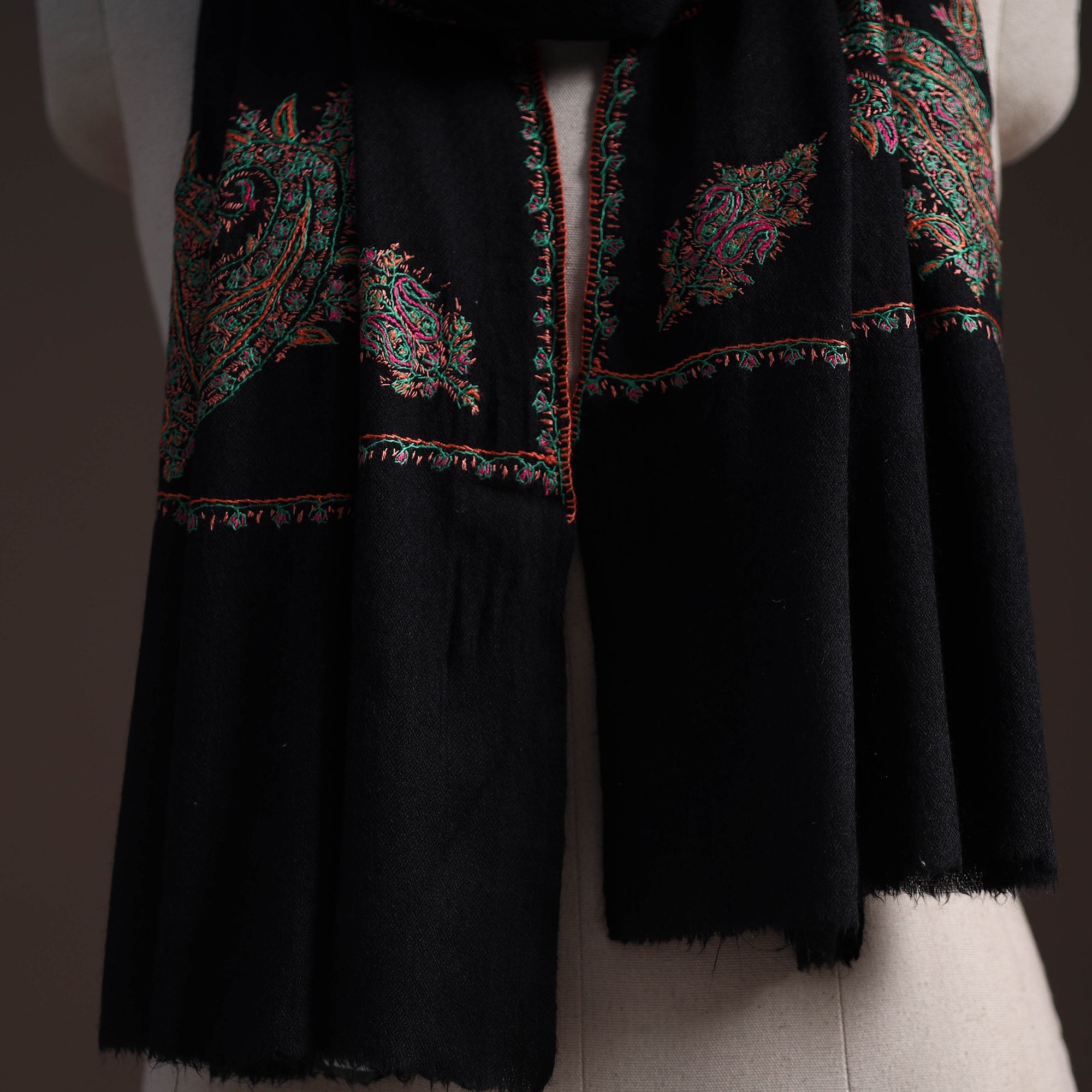 • Handwoven sozni hand embroidered merino wool kashmiri stole