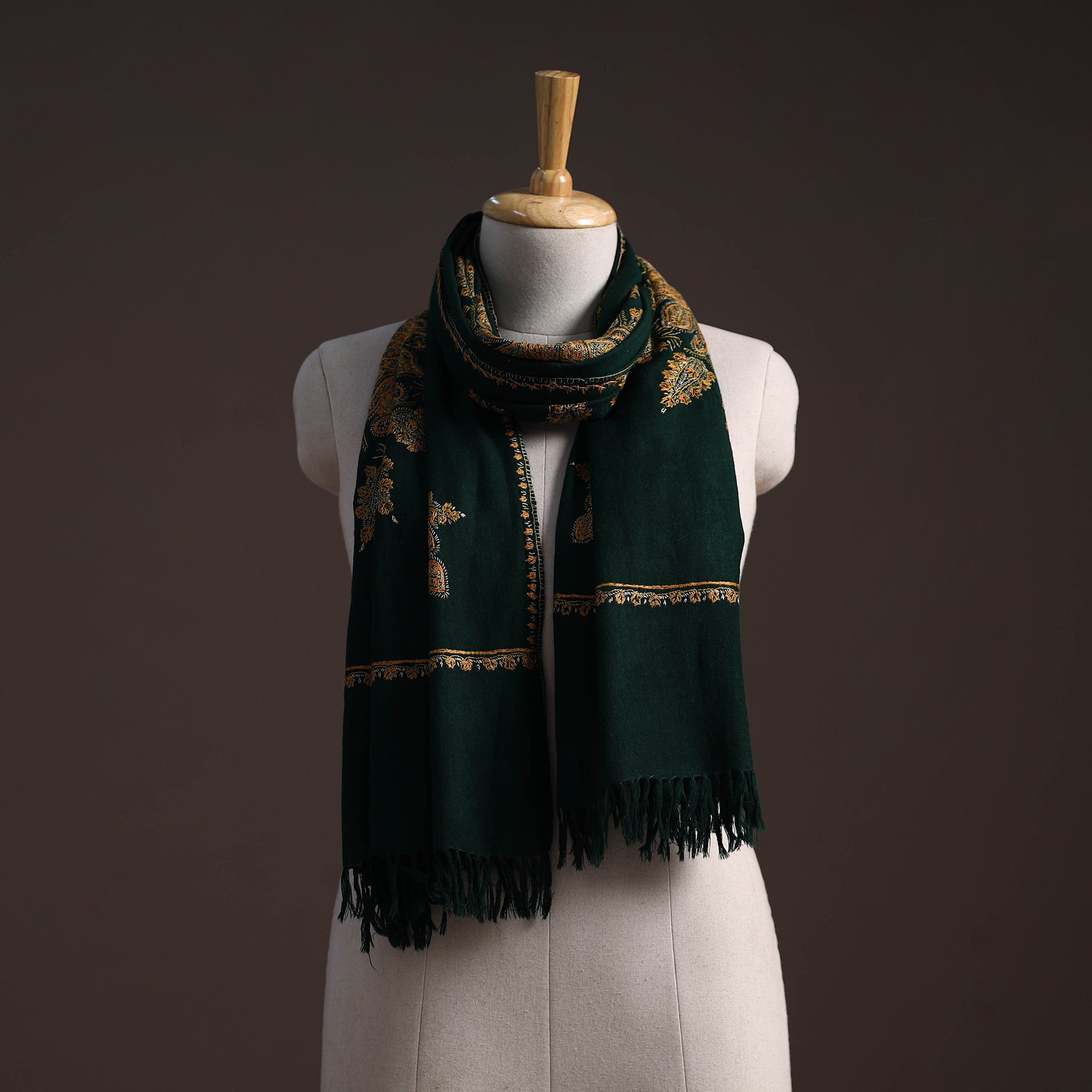 • Handwoven sozni hand embroidered merino wool kashmiri stole