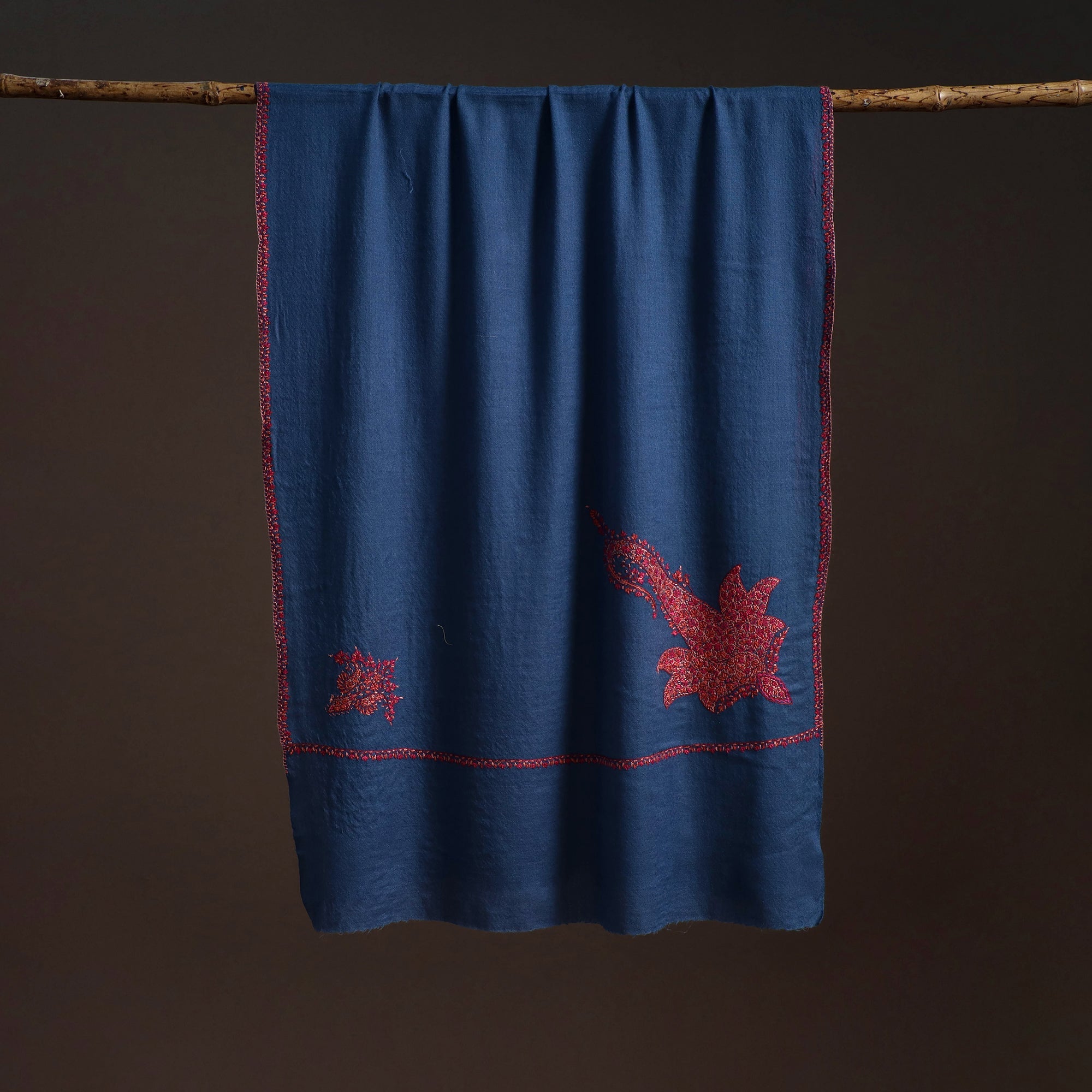 • Handwoven sozni hand embroidered merino wool kashmiri stole