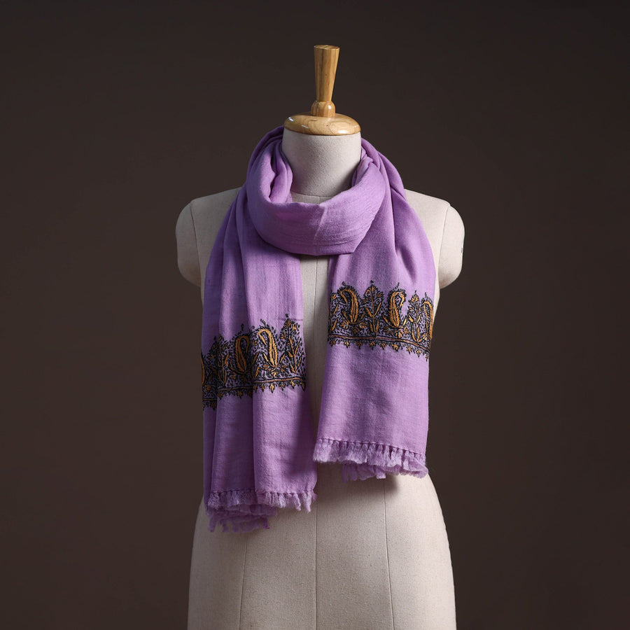Merino wool stole features traditional sozni hand embroidery from Kashmir by skilled artisans Nakeeb, known for its fine and detailed work & carefully create delicate floral and paisley patterns that enhance the stole beauty without adding heaviness. The embroidery feels light and comfortable, making it easy to wear every day. With its elegant look and warm feel, this stole is perfect for winter use and also suits festive and special occasions.
