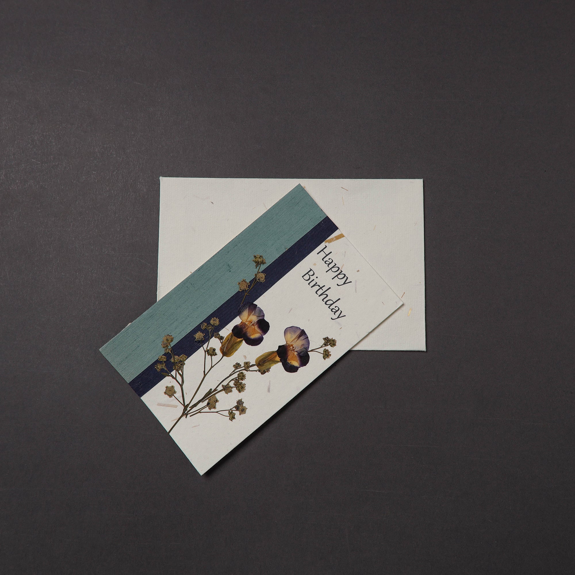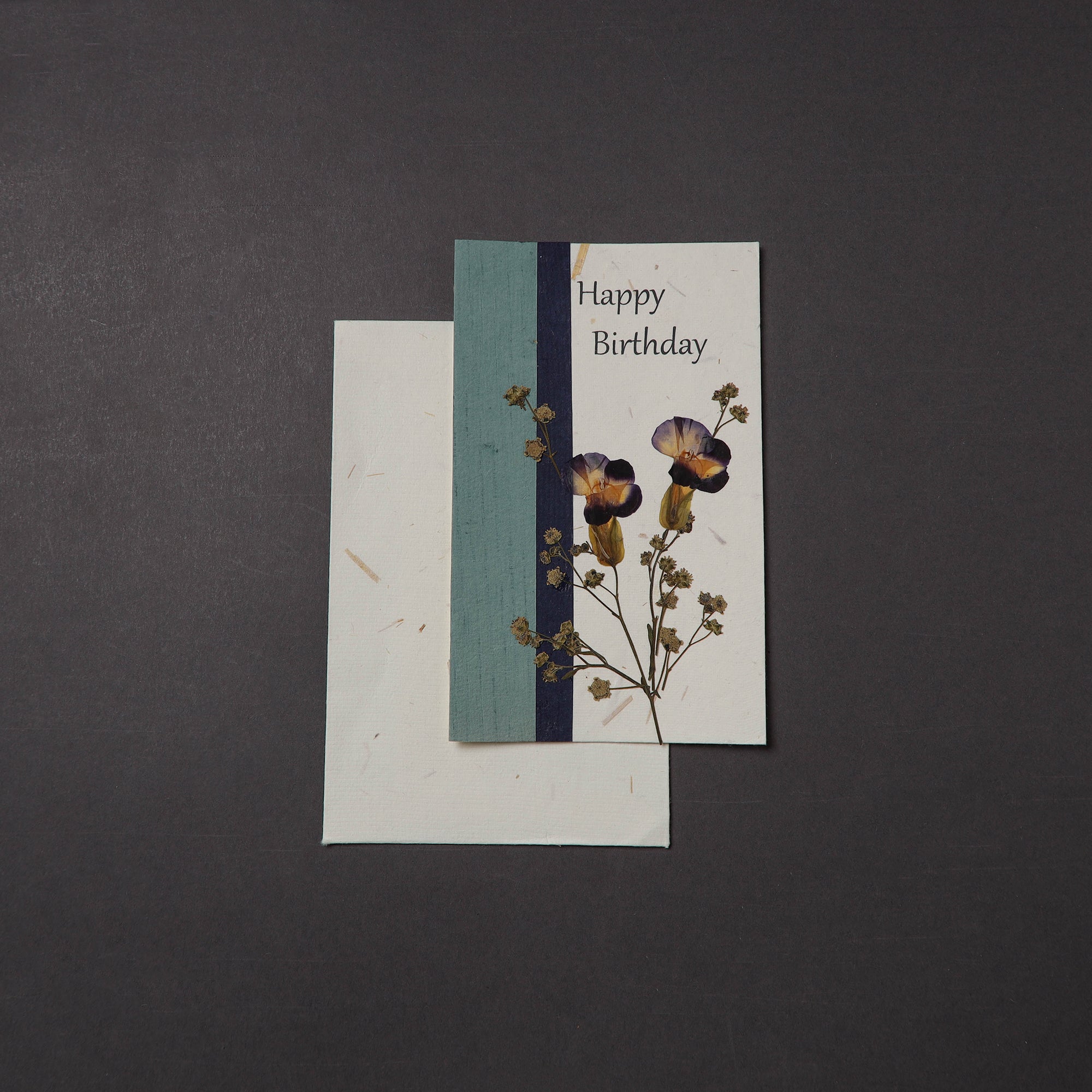 Capture the beauty of nature with flower art handmade greeting card. This card is crafted using recycled cotton and rice straw, featuring intricate pressed flowers and leaves that add a personal, eco-friendly touch. This card come with a matching envelope and are a true reflection of sustainable craftsmanship.