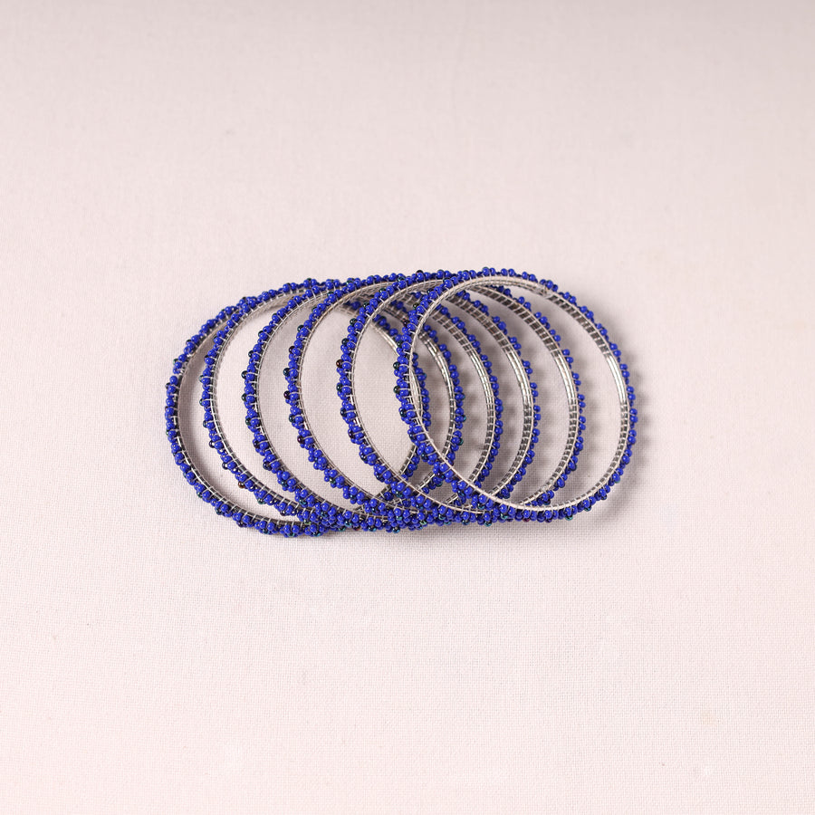 Adorn your wrists with these blue hapur flower beadwork bangles by Aagaz (Set of 6). Each bangle is decorated with delicate beadwork, using high-quality glass beads and a sturdy metal base. The flower patterns are crafted and tied onto the bangle, making them a perfect accessory to enhance any traditional or festive attire.