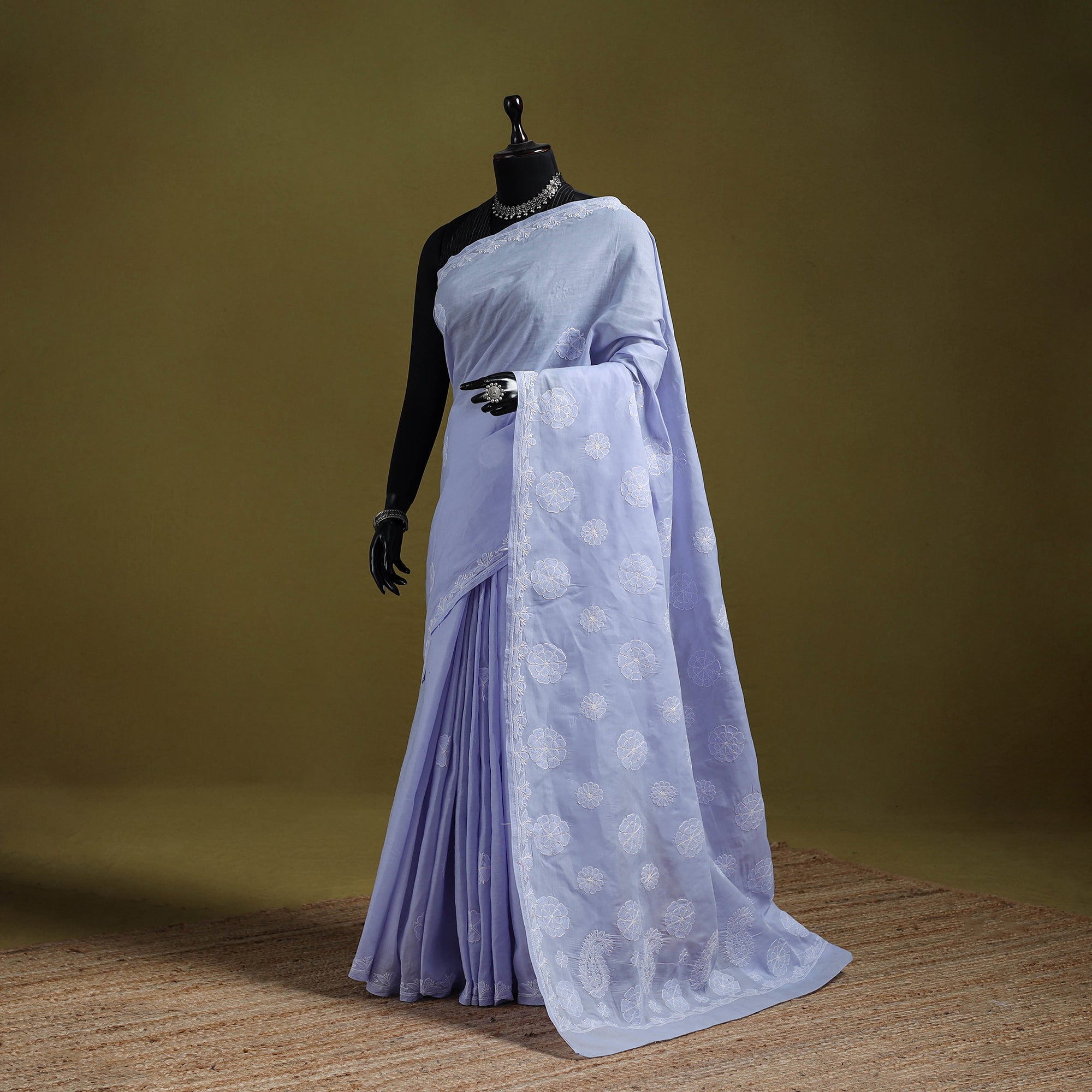 Heavy Hand Embroidered Terivoile Cotton Lucknow Chikan Saree 06