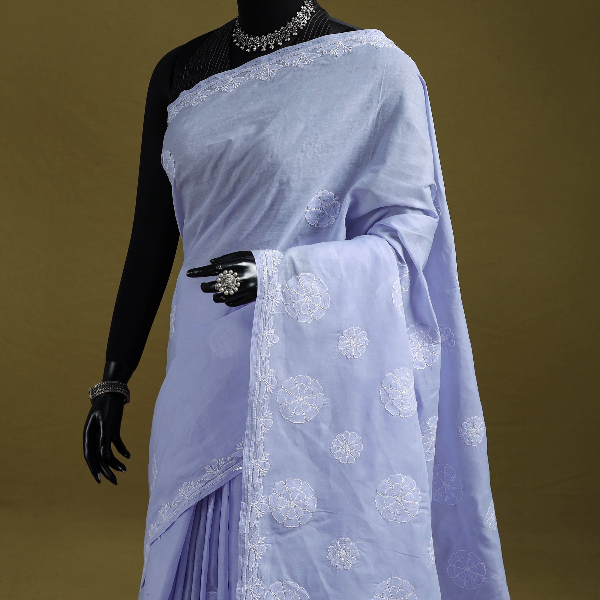 • Heavy hand embroidered terivoile cotton lucknow chikan