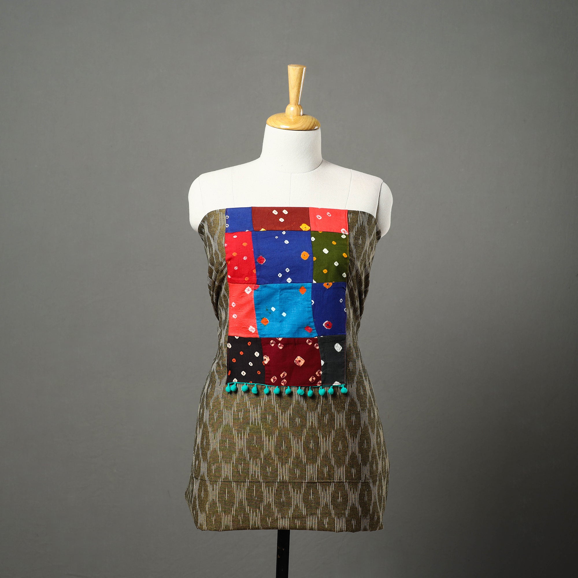 This pochampally ikat cotton kurta material with patchwork features world-famous patterns and colors. Each piece is crafted by skilled artisans, offering a beautiful blend of heritage and style. Perfect for crafting your own ethnic outfits with authentic.