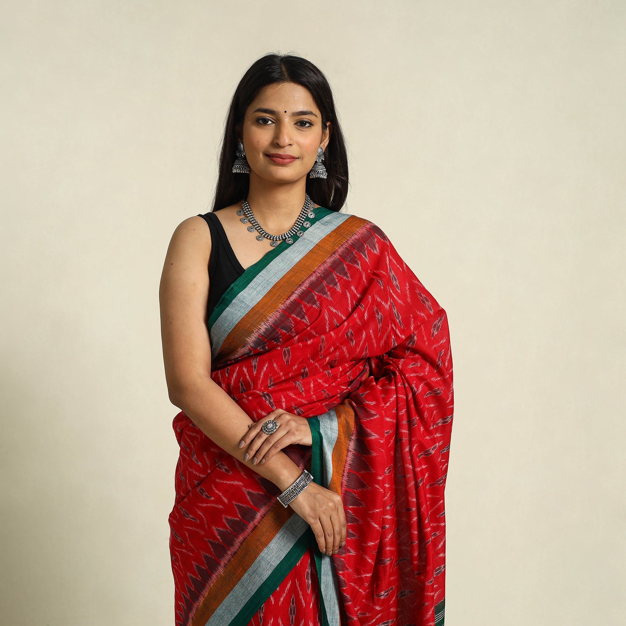 Red - Ikat Handloom Pure Cotton Sambalpuri Saree 09