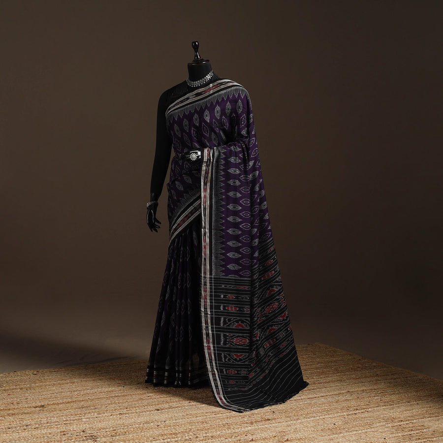 Purple - Ikat Handloom Pure Cotton Sambalpuri Saree 11
