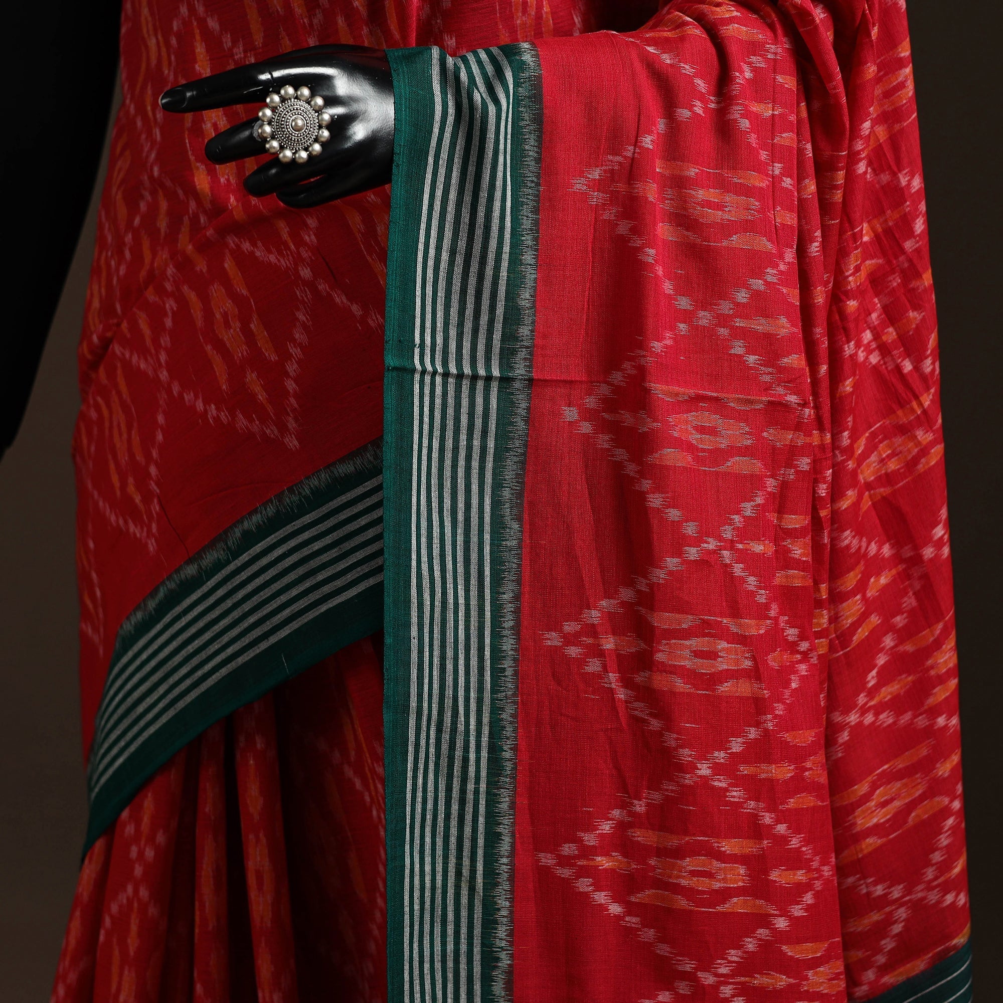 Red - Ikat Handloom Pure Cotton Sambalpuri Saree 09