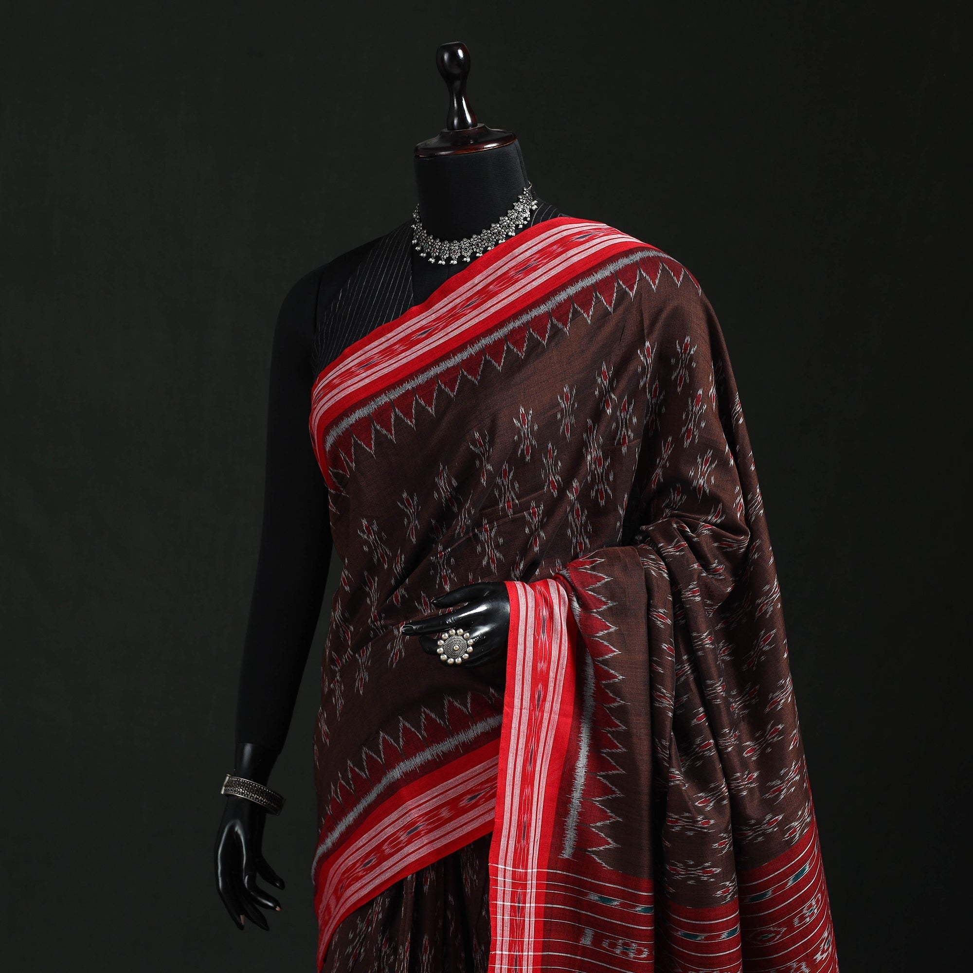 Brown - Ikat Handloom Cotton Sambalpuri Saree 34