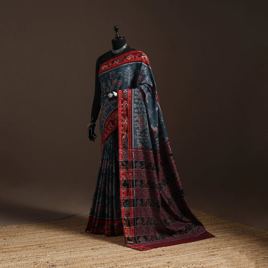 Handloom sambalpuri cotton saree is woven by skilled artisans from Odisha using the traditional Ikat technique, where the threads are dyed before weaving to form the patterns on the fabric. Known for its cultural identity, Sambalpuri weave often features motifs inspired by the region’s traditions, including shells, wheels and geometric shapes. Lightweight and easy to drape, this saree is perfect for everyday comfort as well as festive occasions.