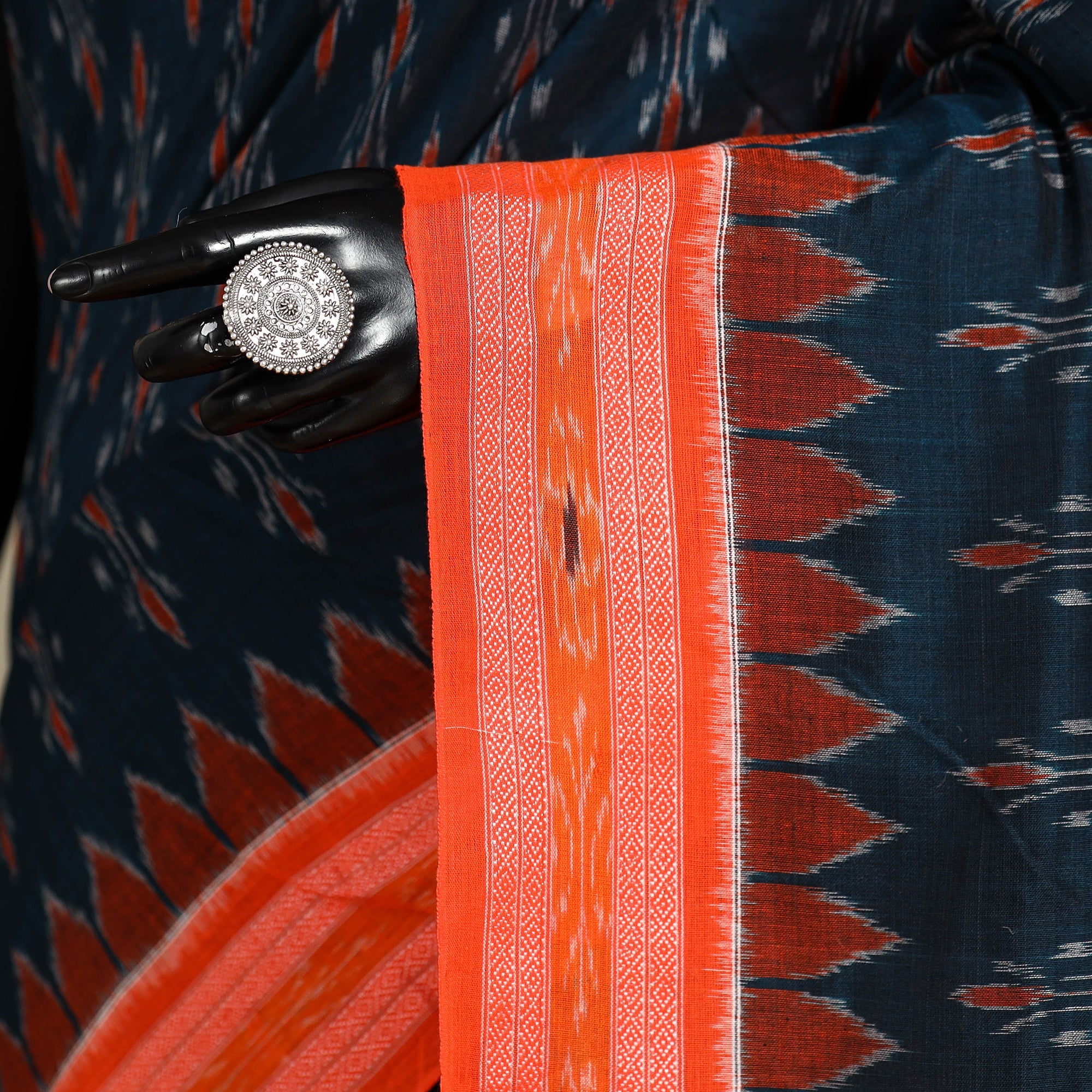 Sambalpuri Ikat is a combination of defined motifs, which are produced through precision and patience by the skilled professional artisans. Almost all of the designs are cotton-based which makes the color seep in deeper making any attire crafted with it which is suitable for all weathers.