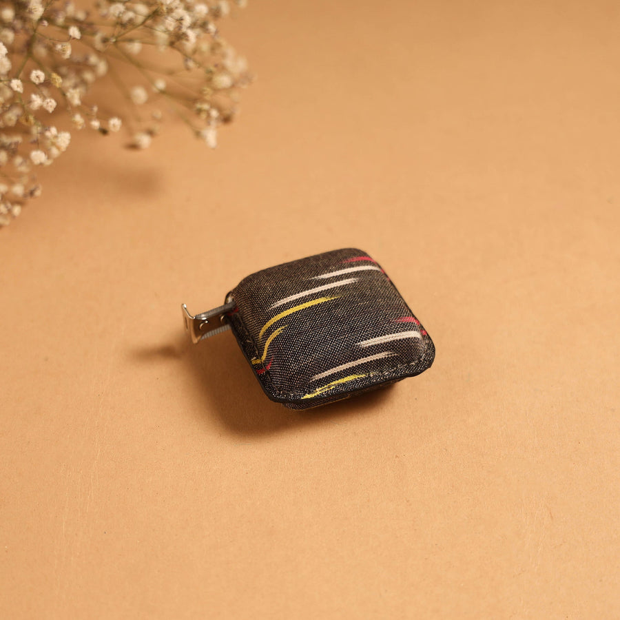 Multipurpose measuring tape features a pochampally ikat cotton fabric cover, adding a touch of tradition to a practical essential. Crafted with a durable iron tin sheet and clear ruler markings, it ensures accurate measurements and long-lasting use. Perfect for interior designers, architects and everyday projects.
