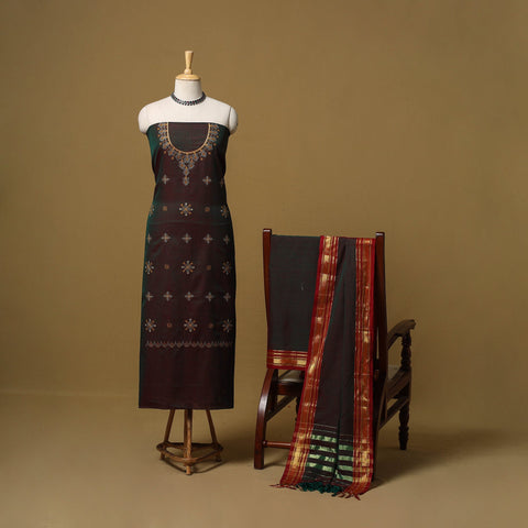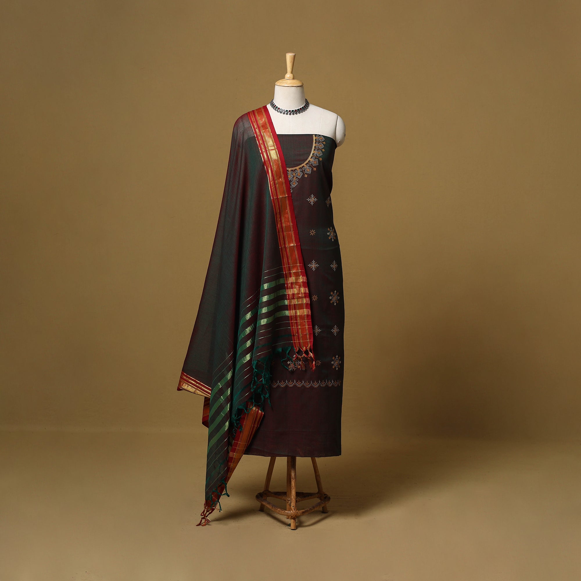 Ilkal Kasuti Embroidery Cotton 3pc Unstitched Dress Material 04