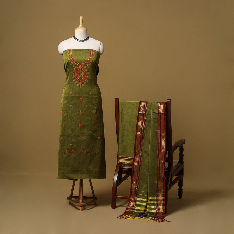 Ilkal Kasuti Embroidery Cotton 3pc Unstitched Dress Material 07