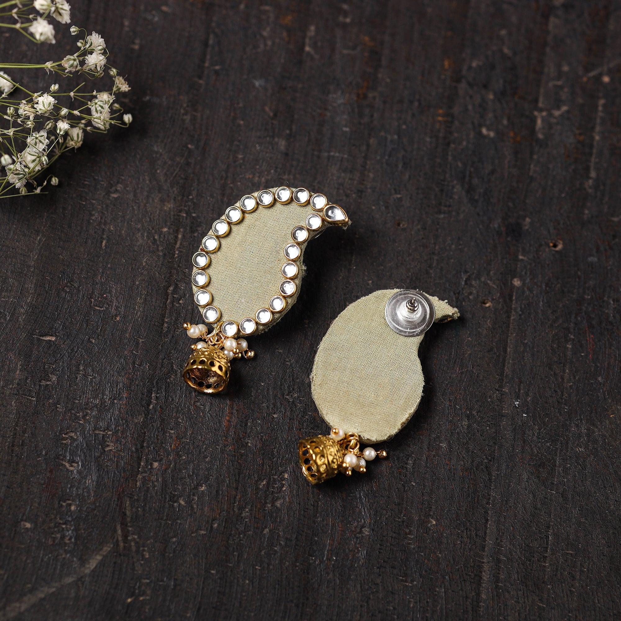 Add a touch of elegance to your look with these beige handmade fabart earrings for women, featuring intricate stonework, beads, and german silver. Designed for both style and comfort, these lightweight earrings are perfect for festive occasions or casual wear.