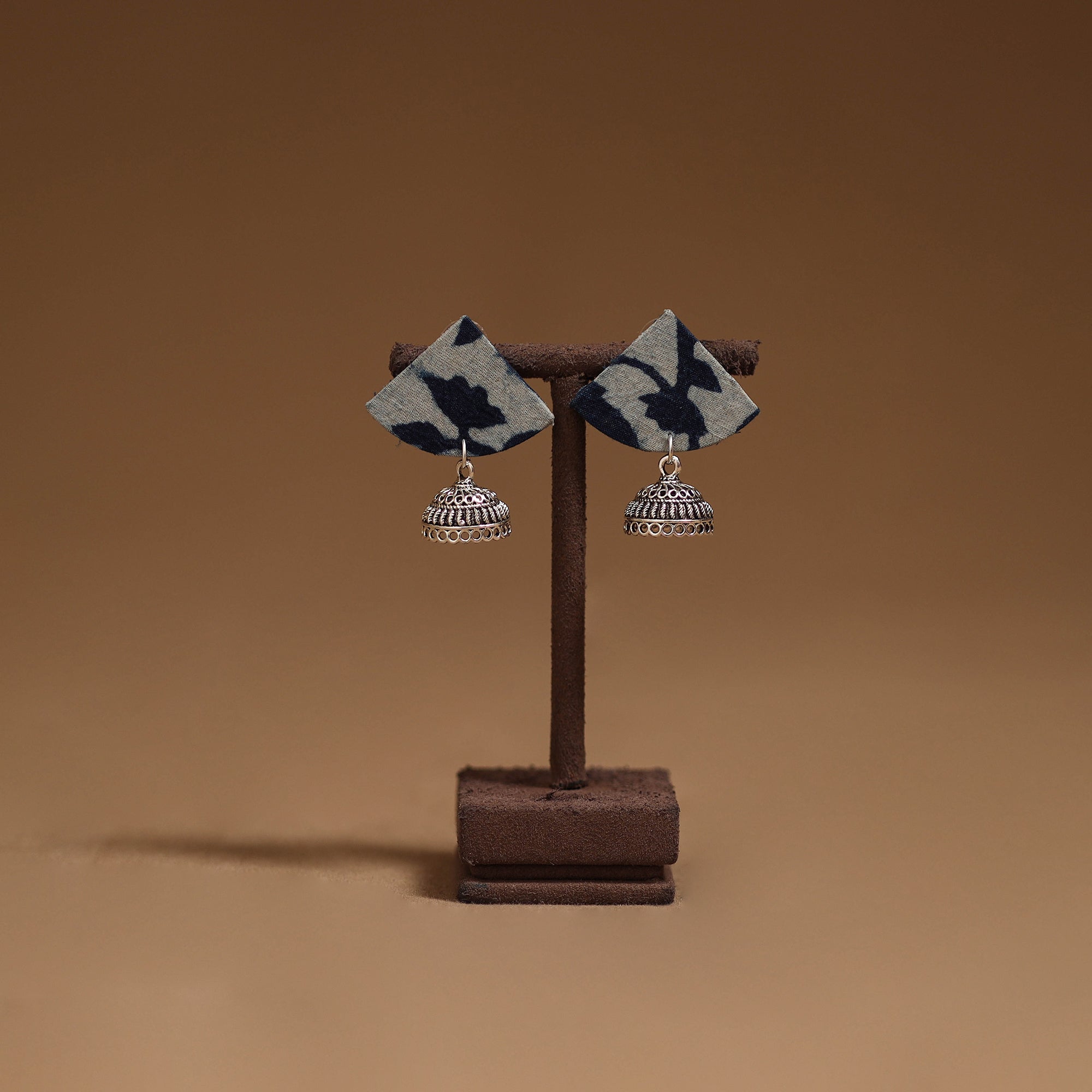 Handmade fabric earrings with german silver jhumki is attached at the end, that enhances its charm. Perfect for everyday wear or special occasions, these earrings blend traditional style with a graceful touch.