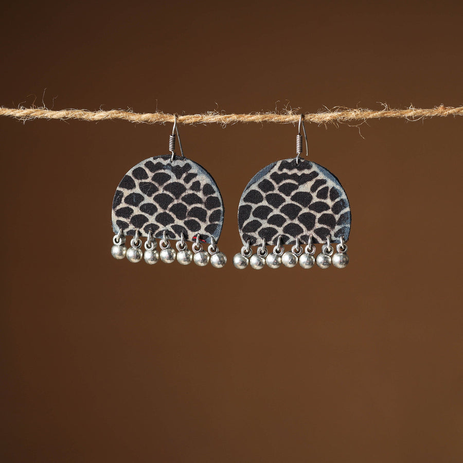 Elevate your style with our black handcrafted earrings. Intricately designed with fabric and ghungroo work, these earrings exude sophistication. Elegant and refined, they effortlessly enhance any outfit with a harmonious blend of tradition and contemporary charm.