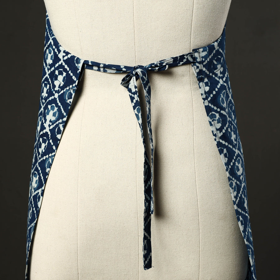 This indigo bagru print cotton apron with pocket, crafted with traditional bagru block printing, combines cultural artistry with everyday functionality. Adorned with bagru prints, it features a convenient front pocket and adjustable straps for a comfortable fit. Perfect for cooking, baking, or grilling, this apron adds style and convenience to your kitchen essentials.