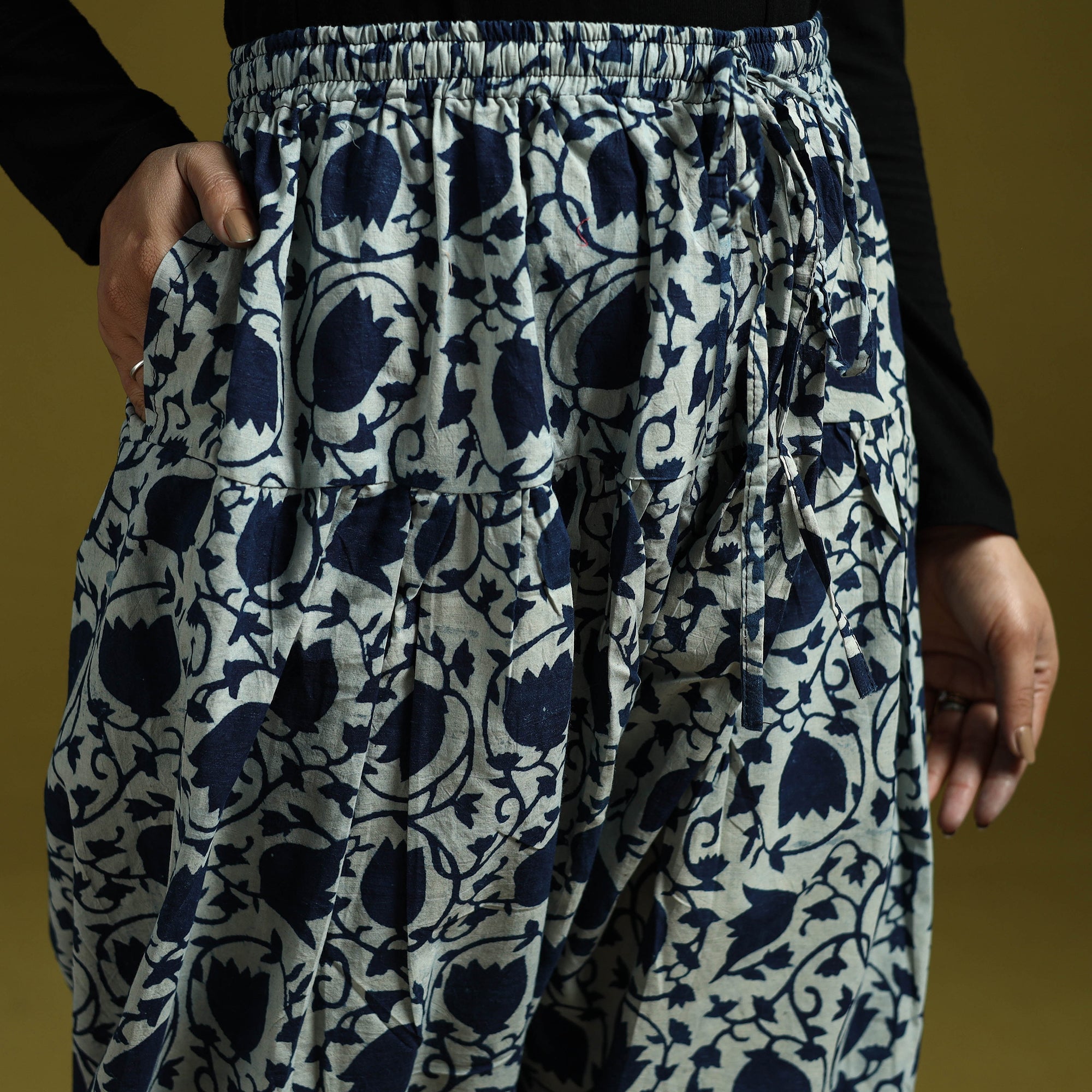 Add a touch of traditional charm to your wardrobe with this blue indigo bagru print women’s salwar from Rajasthan, Bagru printing is known for its hand block designs and rich earthy tones created using natural dyes. The cotton fabric, elasticated waist with drawstring and side pocket ensure all-day comfort and practicality. Pair it with kurtas for a relaxed yet elegant look.