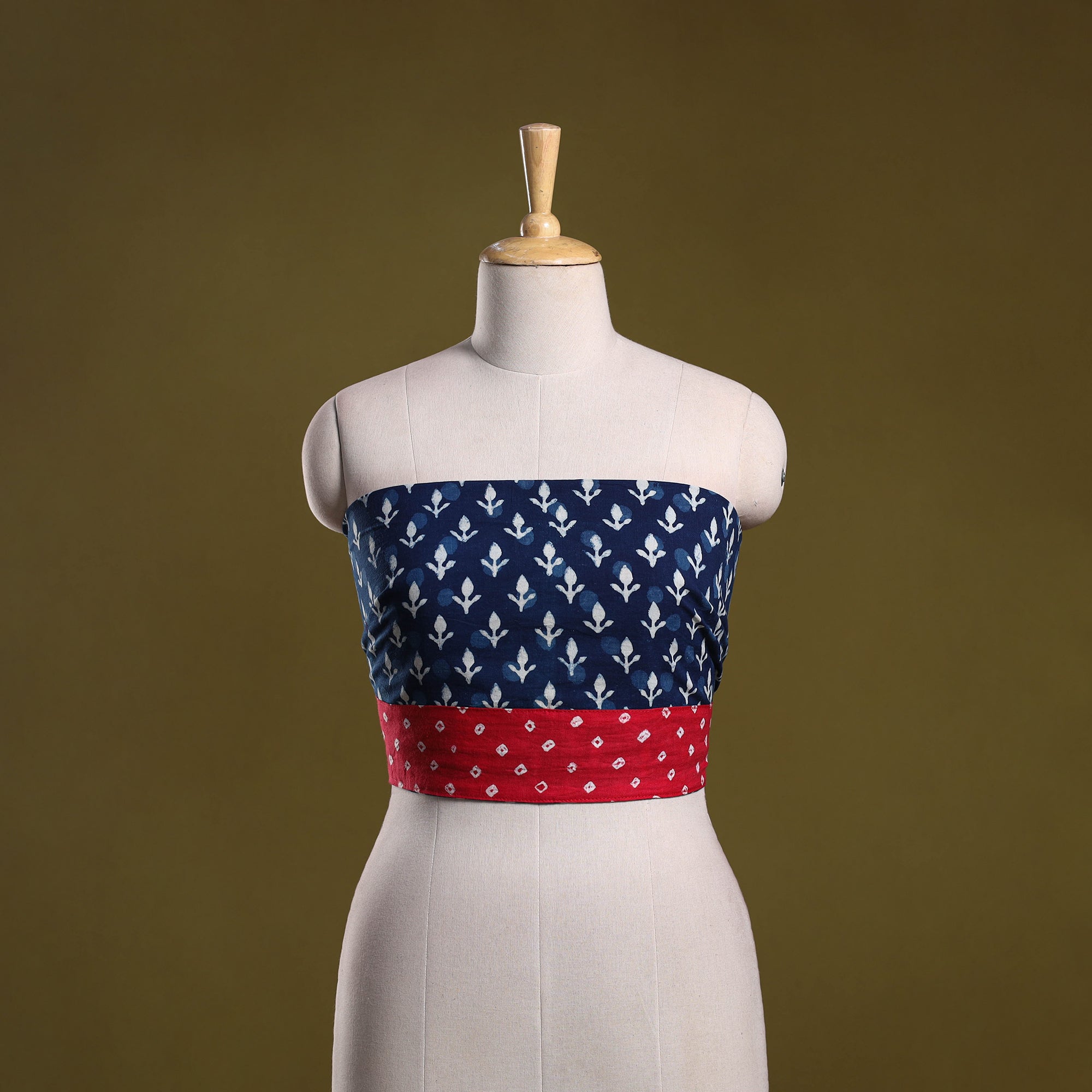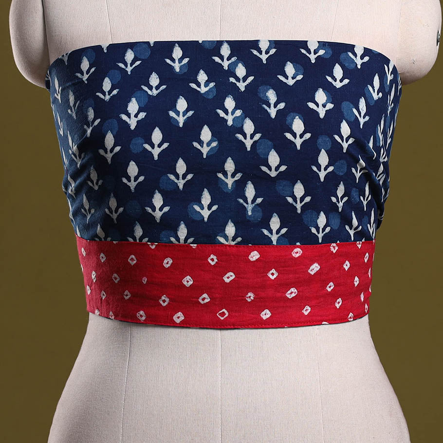 | Material | Blue bagru natural dyed indigo hand block print cotton blouse piece, crafted by skilled artisans using traditional techniques, it showcases intricate patterns created with carefully carved wooden blocks. The breathable cotton base makes it suitable for everyday wear. It can be tailored into a blouse in your preferred style and pairs beautifully with a variety of sarees. |