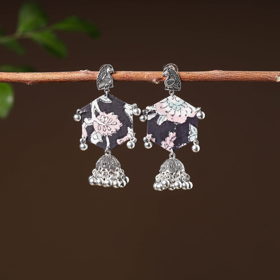 Add a touch of elegance with these lightweight black handcrafted gs fabart earrings, handcrafted from fabric and german silver. Designed with intricate details by skilled artisans, they offer a perfect mix of tradition and modern style. Versatile for any occasion these earrings are ideal for everyday wear or adding charm to festive outfits.