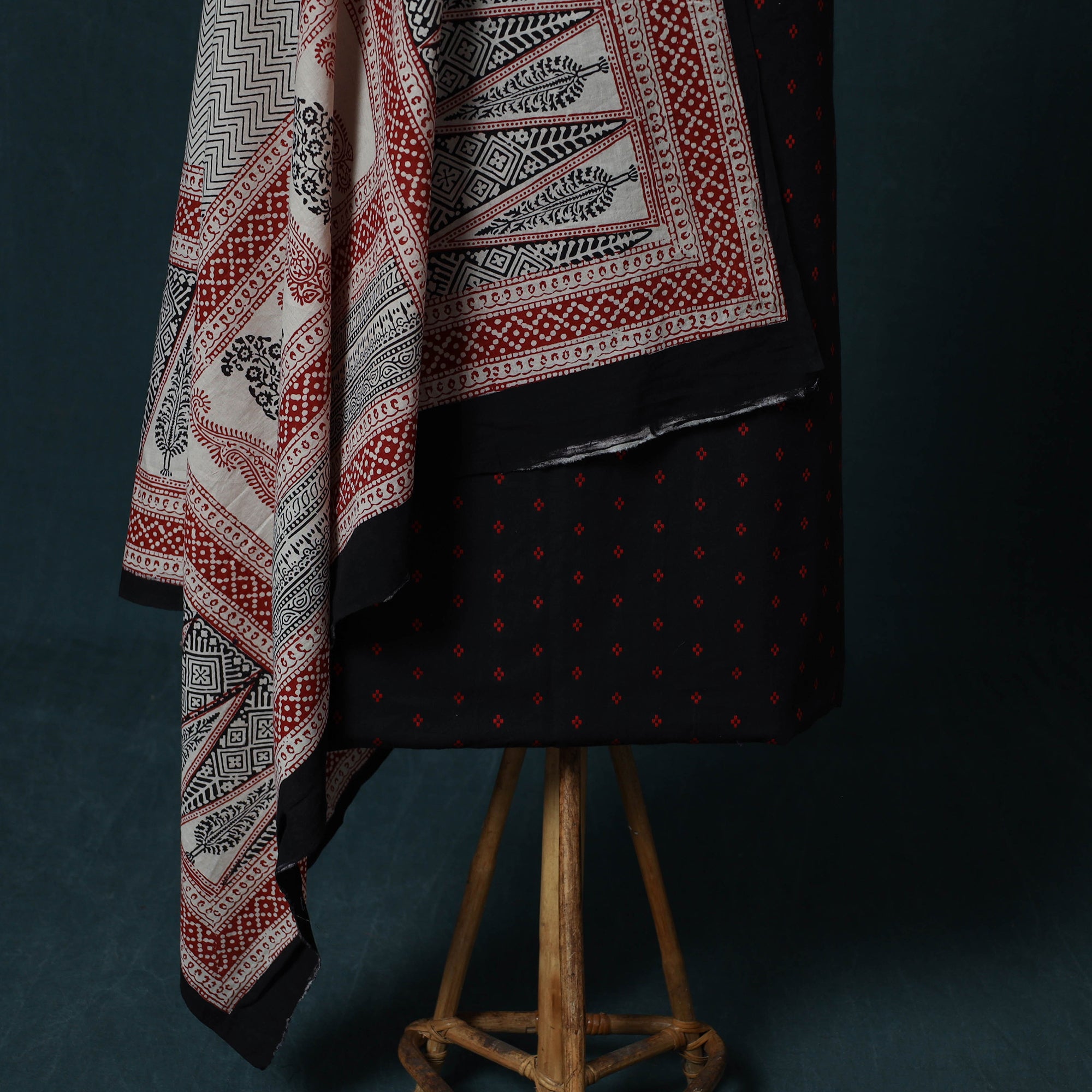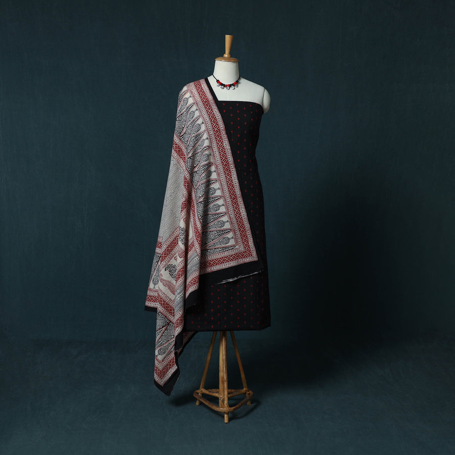 Jacquard cotton 2pc dress material with bagh hand block print dupatta and matching jewellery.