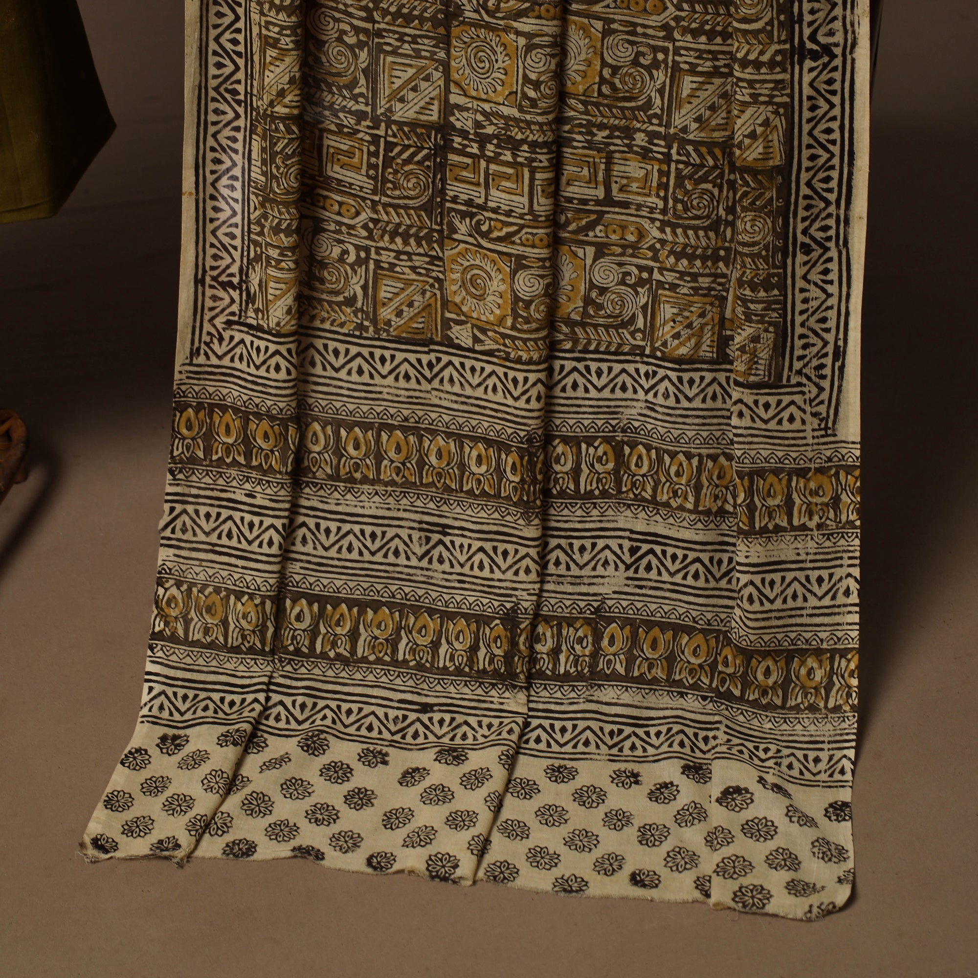Pure cotton 2pc unstitched dress material set features jacquard woven kurta fabric where patterns are created directly during the weaving process. It is paired with kalamkari printed dupatta. The set also includes a handcrafted necklace and matching earrings.