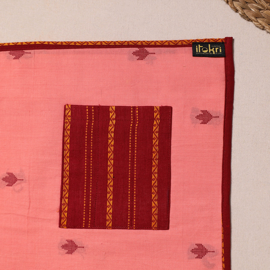Enhance your dining experience with this peach handcrafted jacquard cotton table mat with pocket, designed for both elegance and functionality. Woven using traditional jacquard weaving techniques, it features intricate patterns and practical pockets, perfect for holding spoons and small dining essentials with ease.